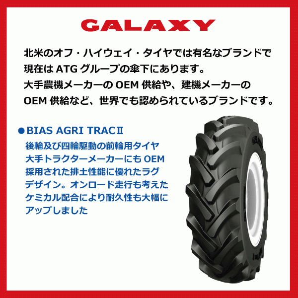 GLAXY トラクター4輪駆動用前輪及び後輪 BIAS AGRI TRACII 9.5-16 6PR | |