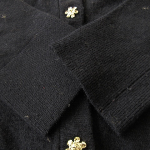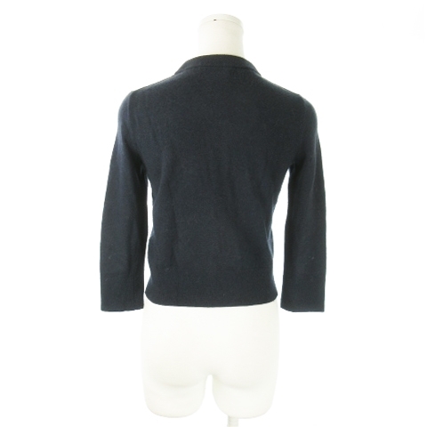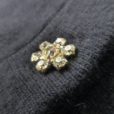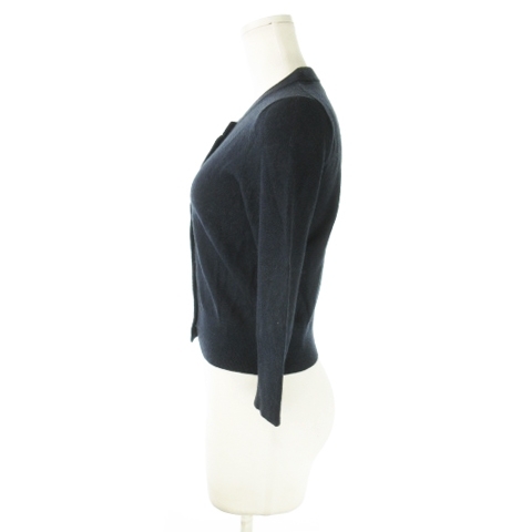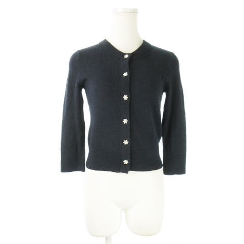 ケイトスペード KATE SPADE live colorfully 七分袖カーディガン ニット クルーネック ショート丈 ビジュー 花モチーフ XS 紺
