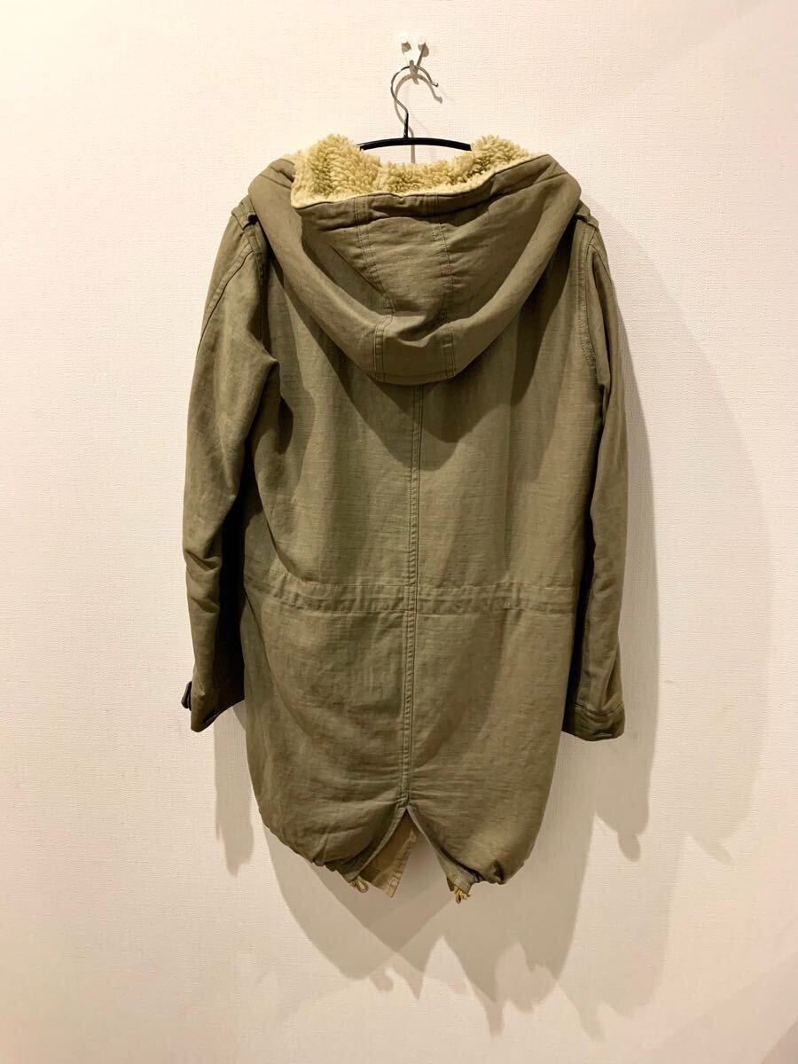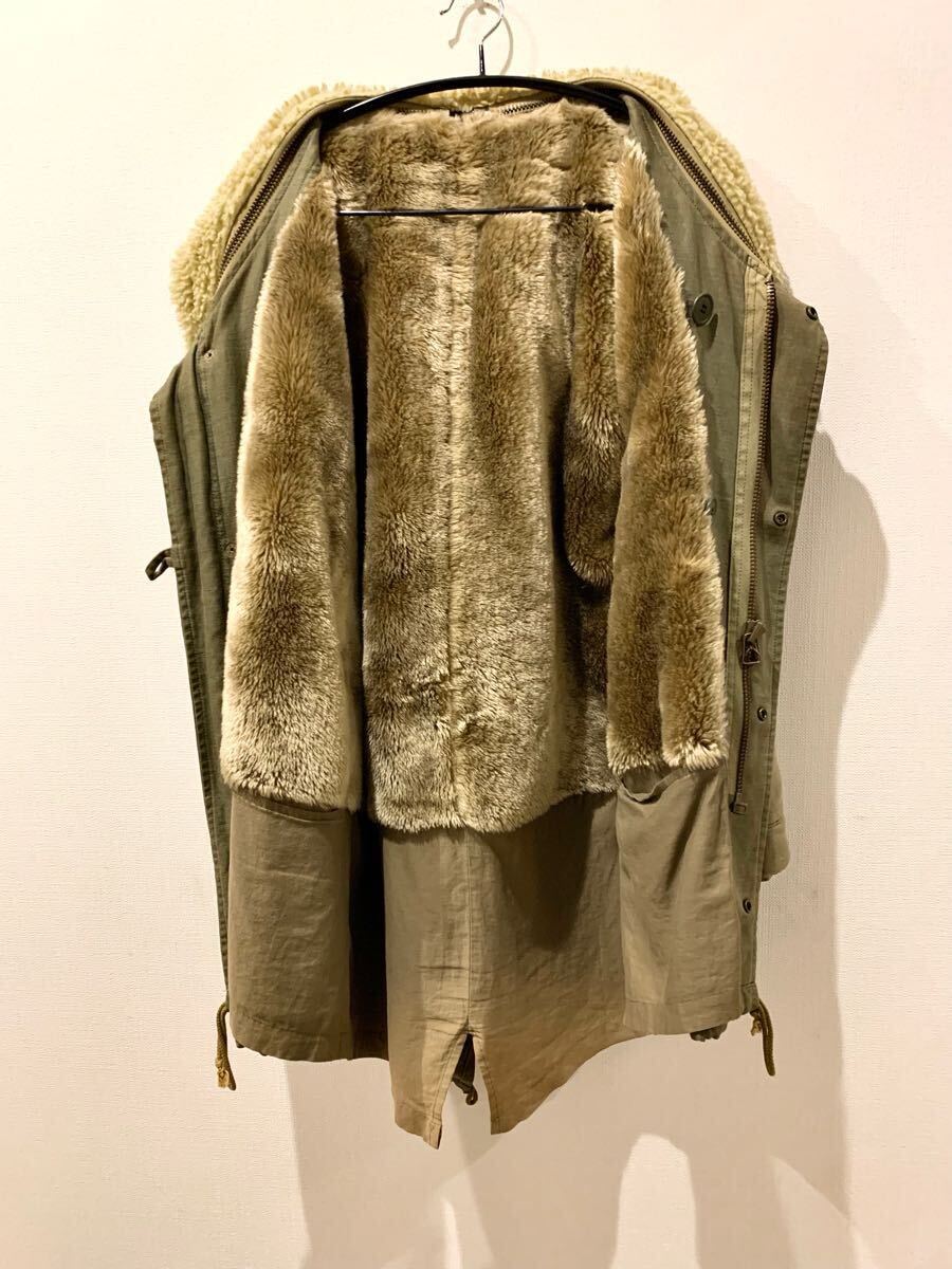 首元がすっきりとした珍しいデザインです。フードはジップで取り外しが可能、内側にはフェイクファーでかなり暖かいです。