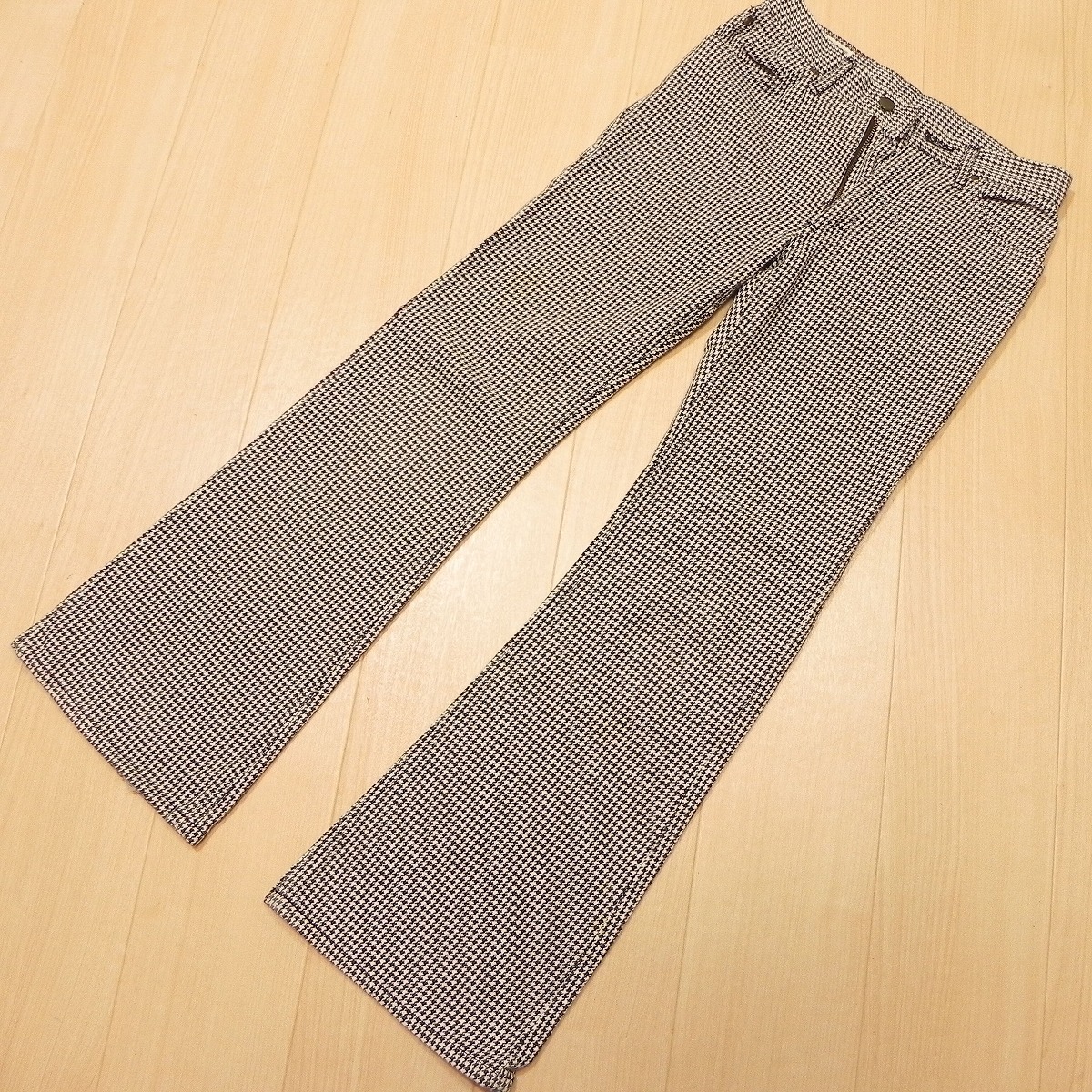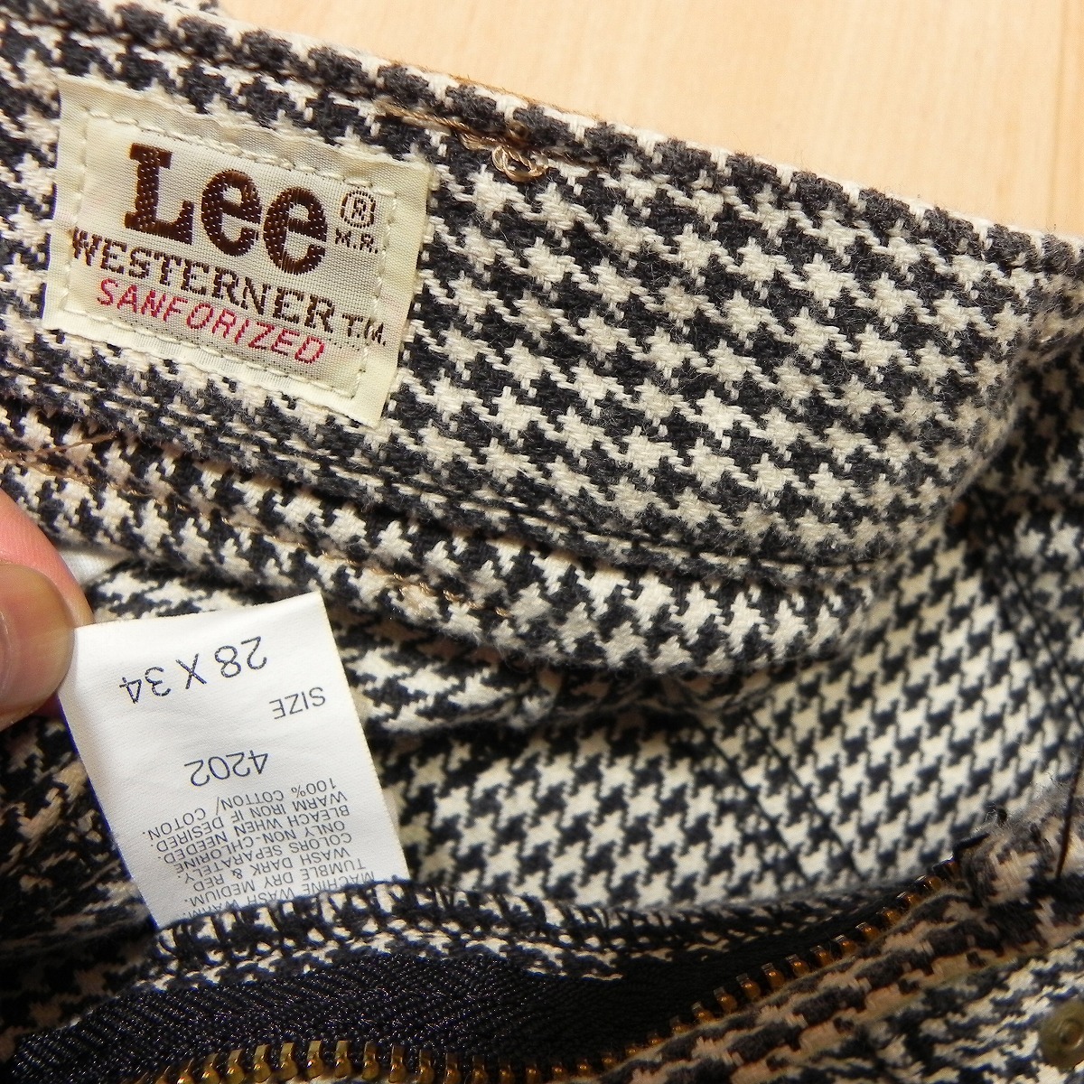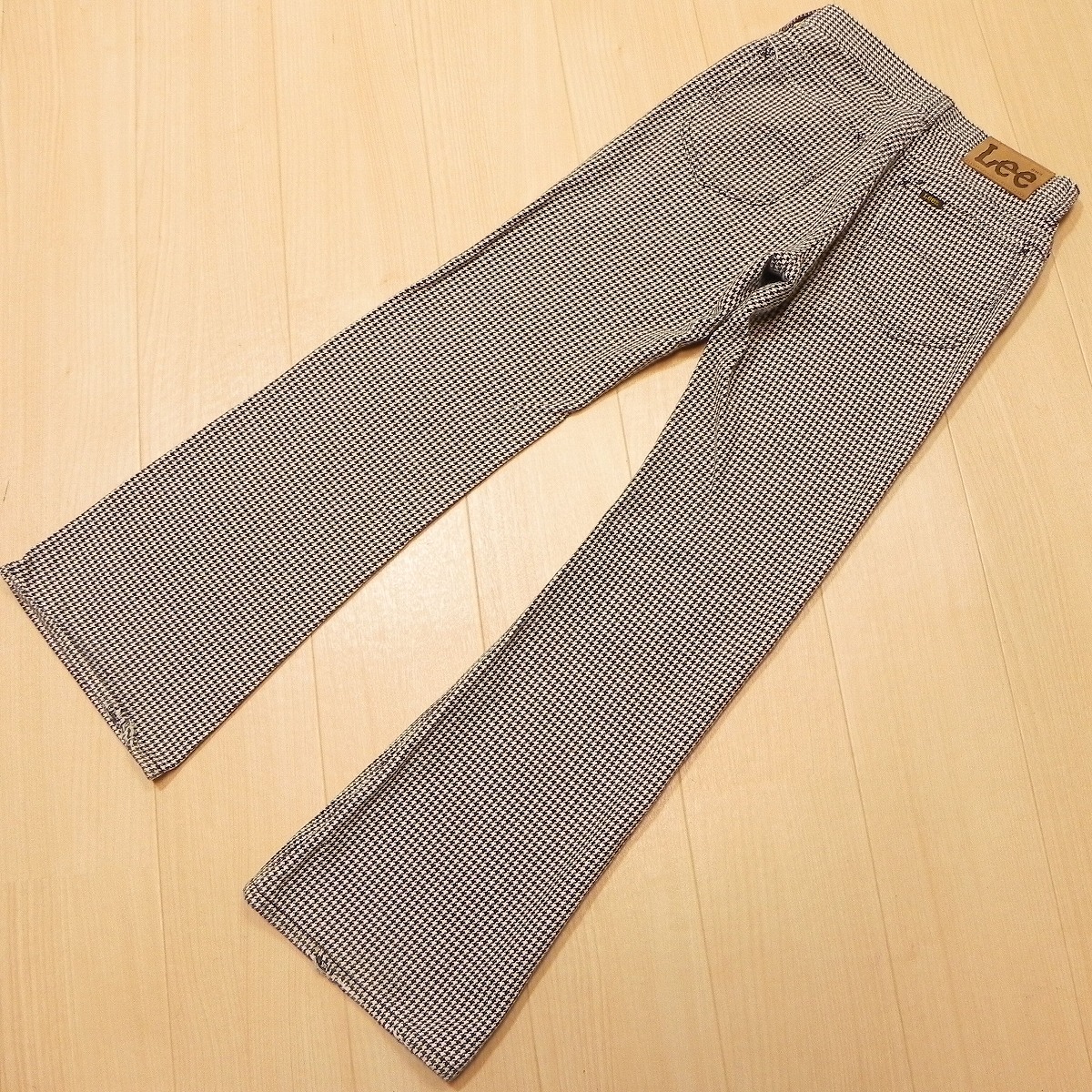 (653★ W28 日本製 LEE リー 4202 ウエスターナー WESTERNER 千鳥柄 ブーツカット パンツ フレア 古着 レトロ 秋冬 綿100 ★