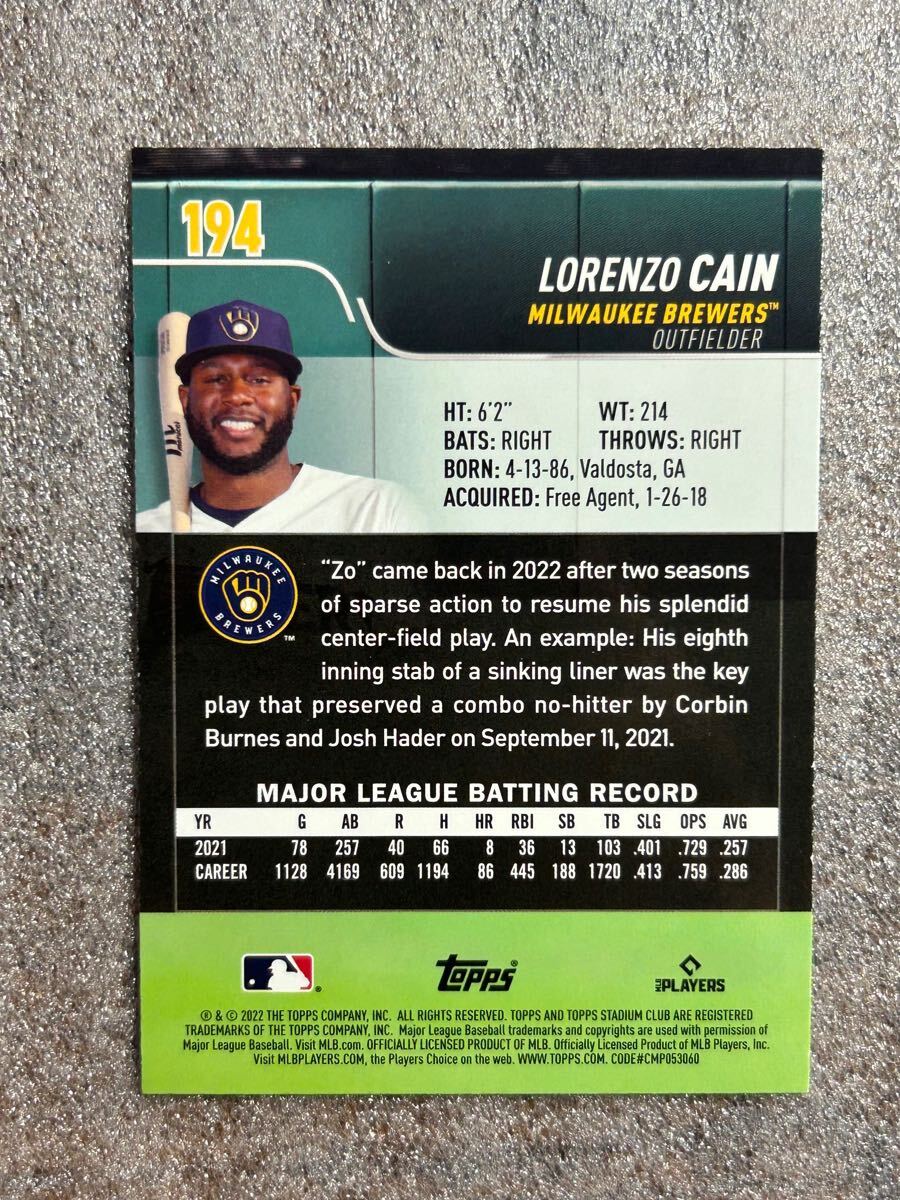 ロレンゾ ケイン Lorenzo Cain Topps stadium club MLB 黒パラレル