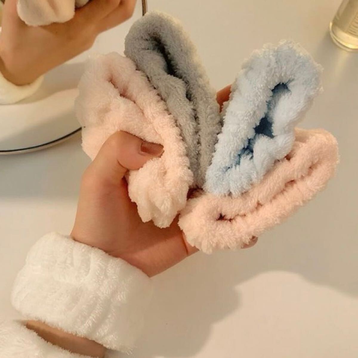 手首にはめるだけで、伝ってくる水を吸水してくれます♪