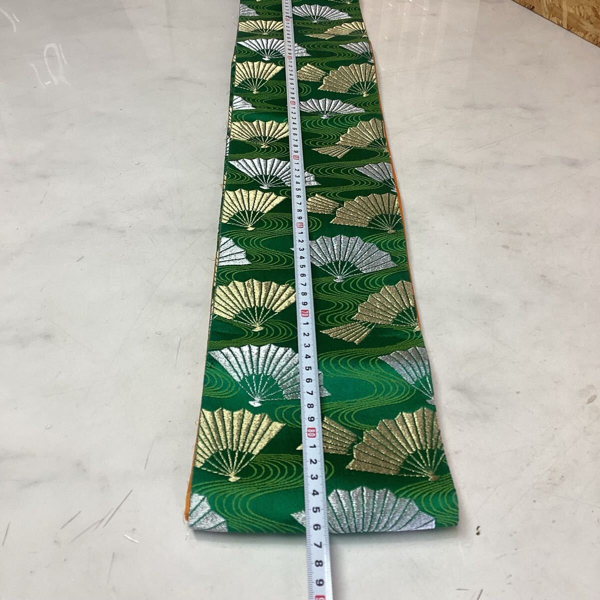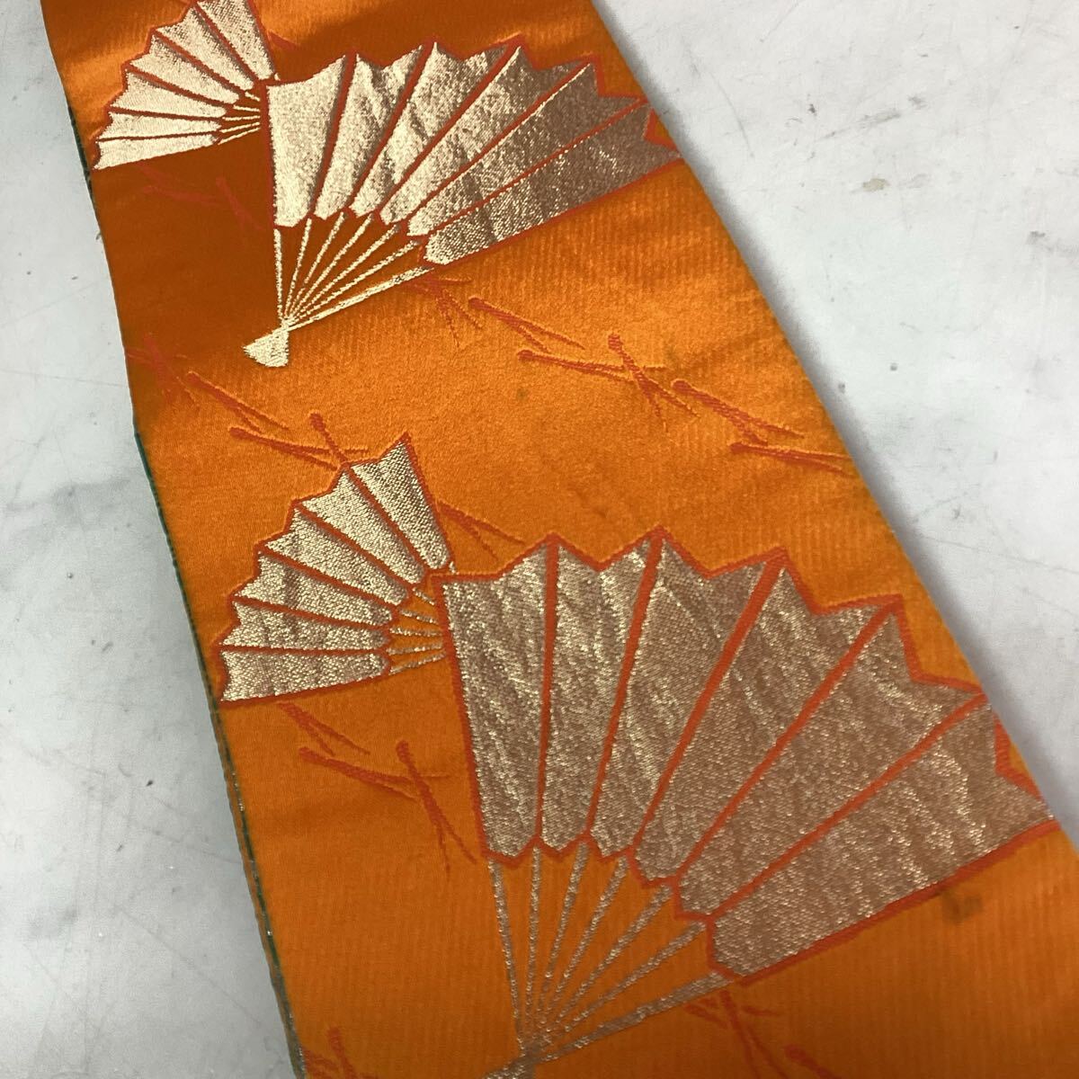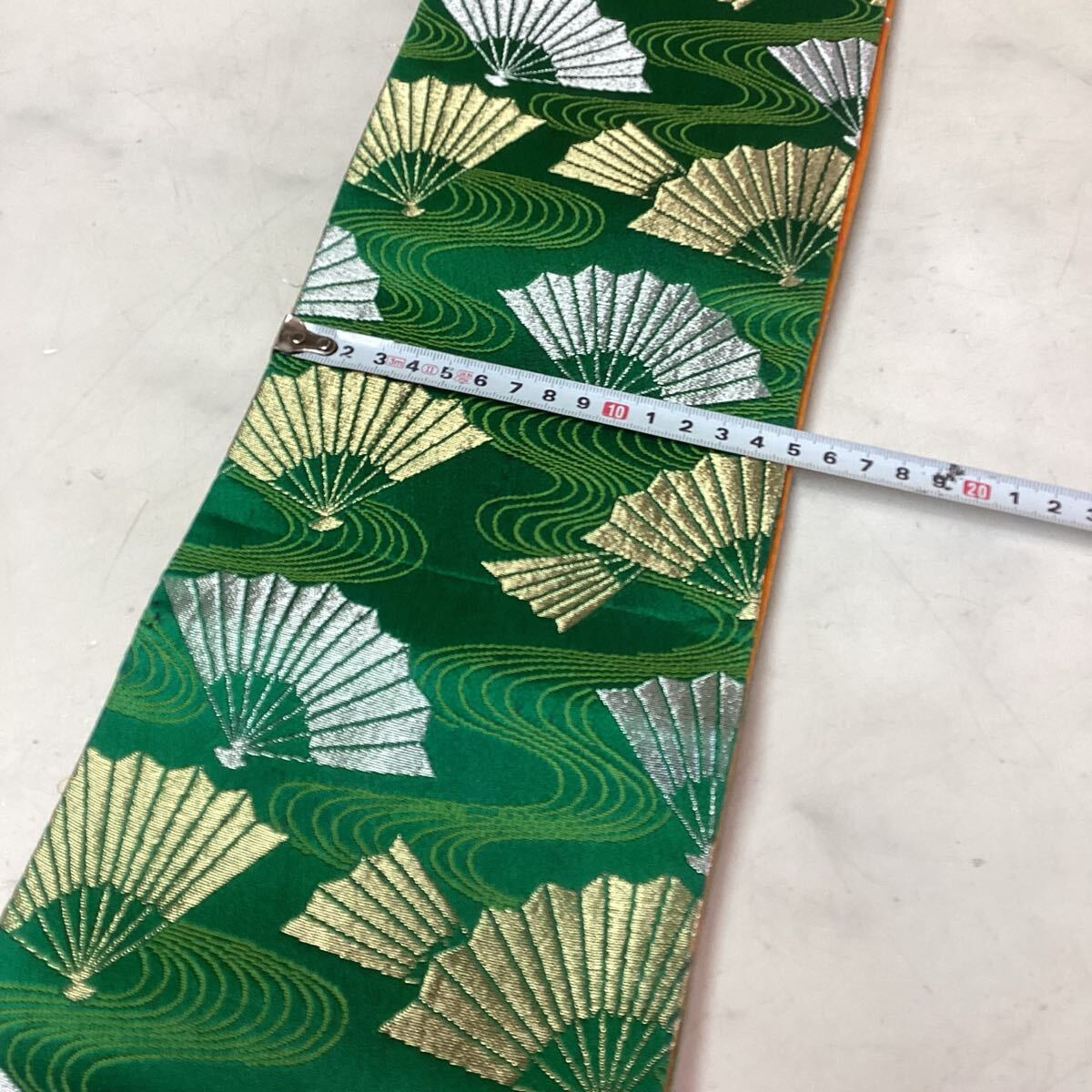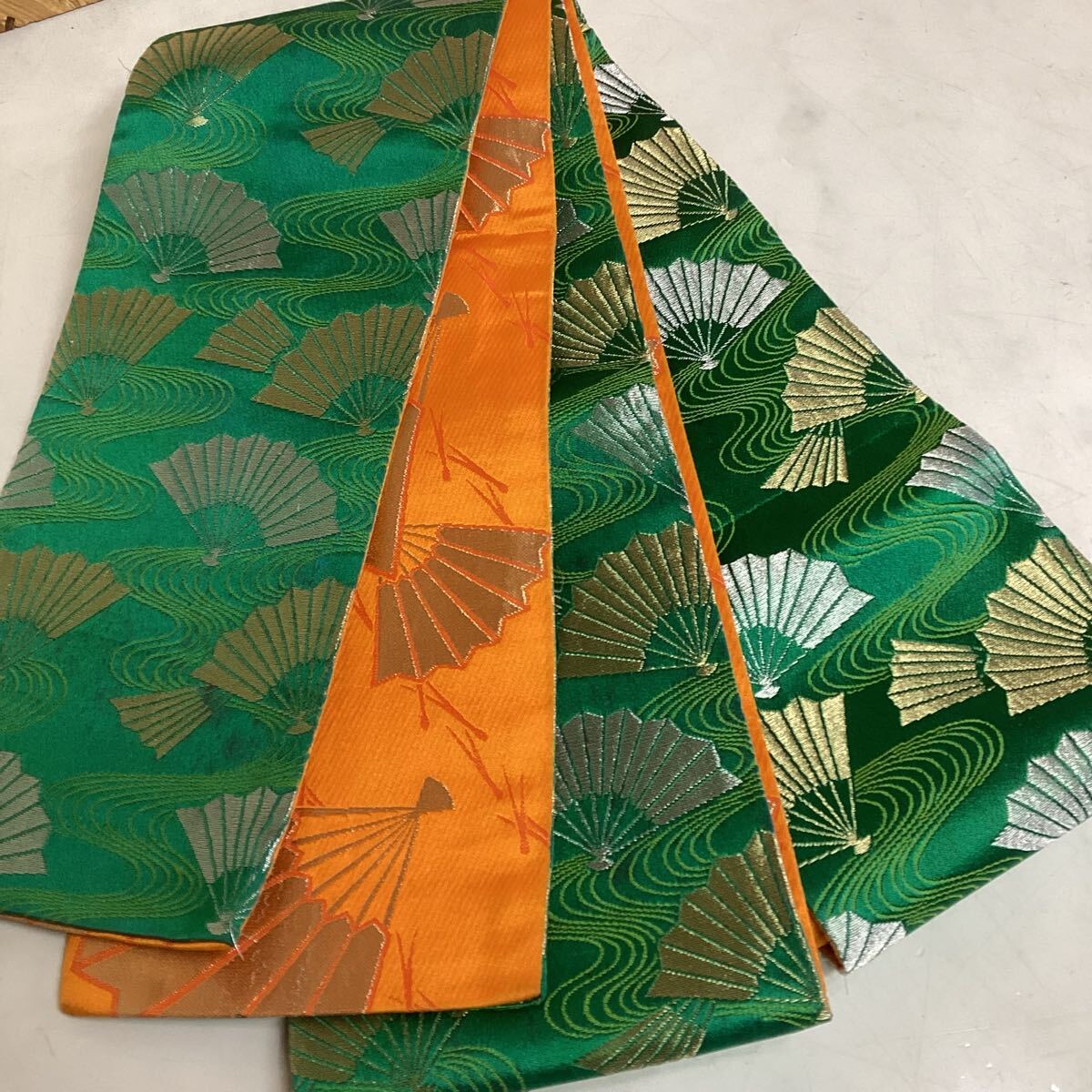和装 着物 帯 扇子模様 グリーン オレンジ 華やか エレガント (に100)