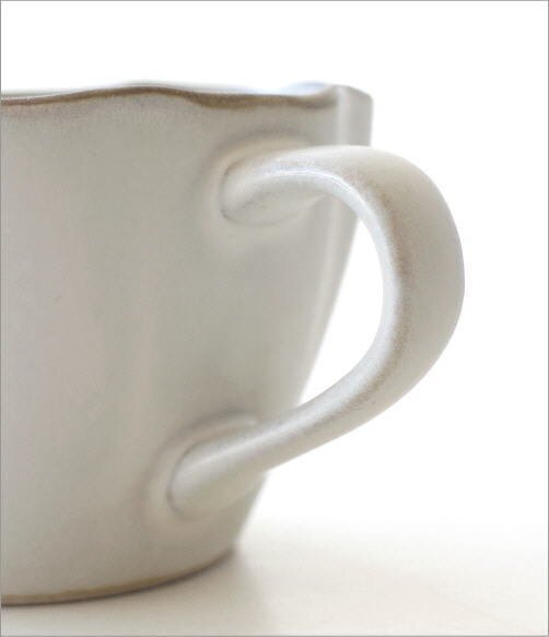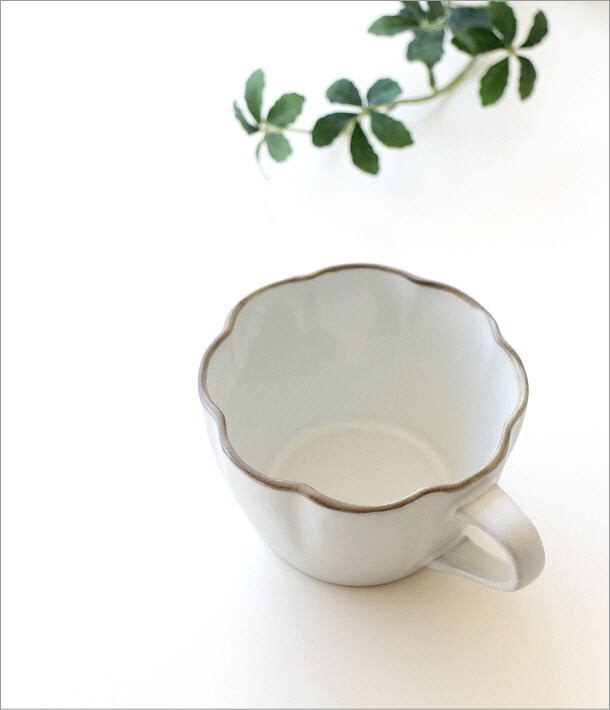 | お花の輪かくのマグカップは コロンとしたフォルムと さらさらとしたマットな器肌で ずっと触れていたくなるような 優しい手触りが魅力です コーヒーや紅茶の色も楽しめる乳白色の器は スープやヨーグルト、シリアルを入れても似合いそう 自分のリラックスタイムにはもちろん お客様が笑顔になるような 気持ちがほっこりするデザインの器です 商品名 : りん花ホワイトマグカップ 商品番号 : mkn2204 サイズ(cm) : 幅12.5×奥行9.8×高さ6 容量(9分目) : 225cc 材質 : 陶器 重量 : 190g 使用方法電子レンジ)〇 食洗器)× オーブン)× 生産国 : 日本(瀬戸) ※陶器の裏面は多少ざらざらとしているため、テーブル等の擦り傷にご注意ください -陶器(土物)の特性とお願い- 土物は同じ技法、同じ窯で焼成しても土や釉薬に含まれる天然鉱物などの影響や天候で焼き上がりは微妙に異なります。工業製品のように同一の物になる事はありません。手作りの不均一性、窯変、釉薬の細かいヒビ(貫入)や垂れ等は、製造元より土物の特性として良品の扱いとなります。ご理解頂きお買い求めくださいますようお願い申し上げます |