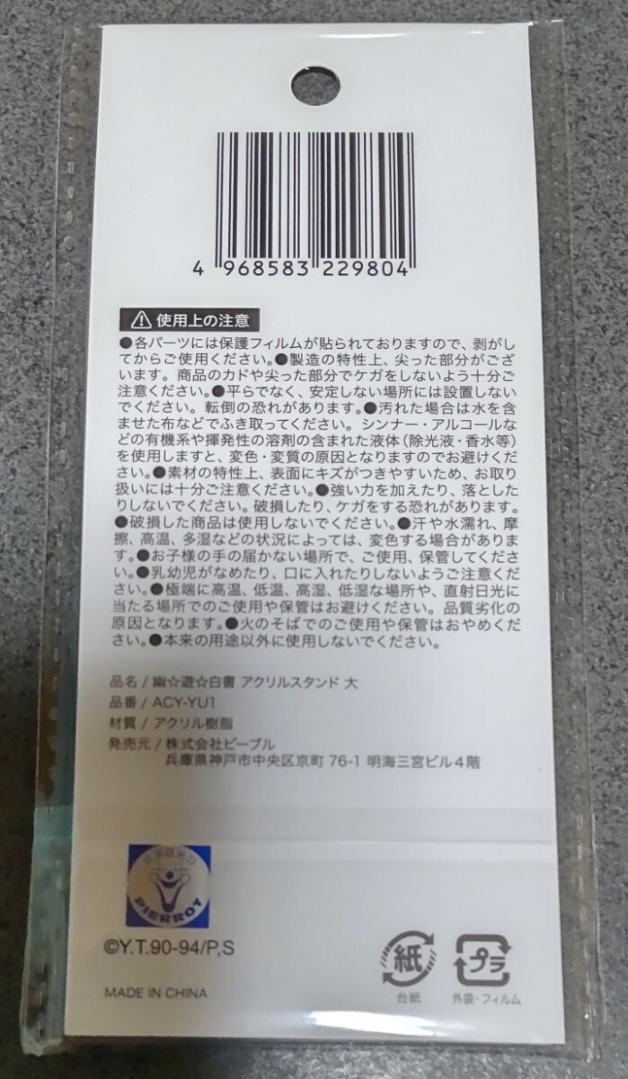 Seriaで新品で購入した幽☆遊☆白書のキャラクター、浦飯幽助のアクリルスタンドになります。