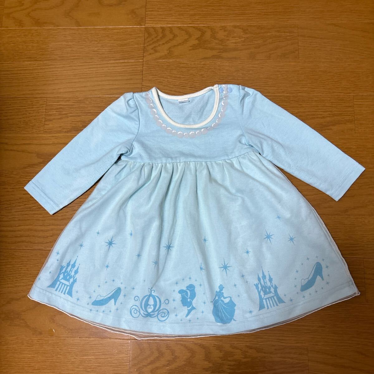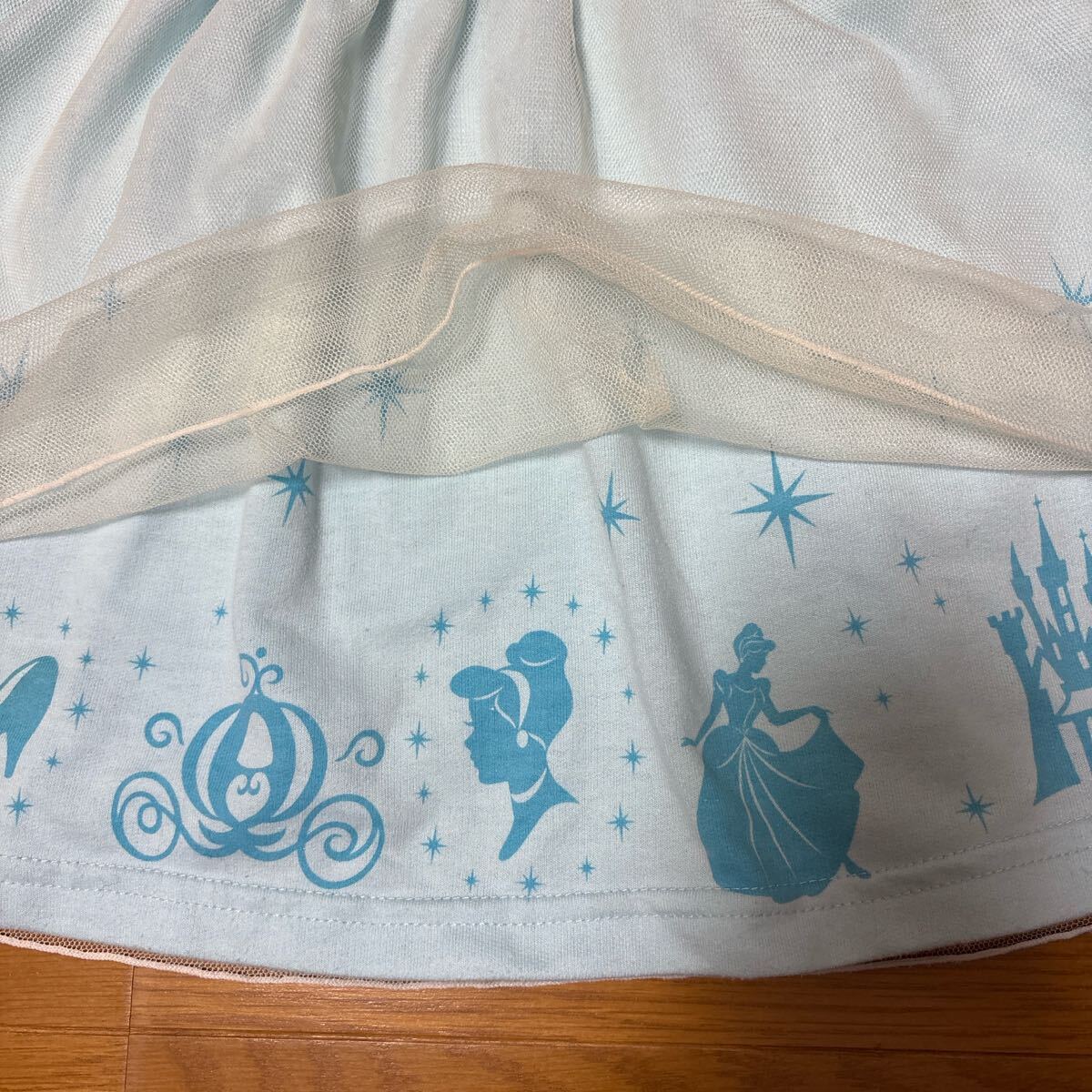●裾にはシンデレラ・シンデレラ城・ガラスの靴・馬車などの濃いめ水色のプリント付きです。