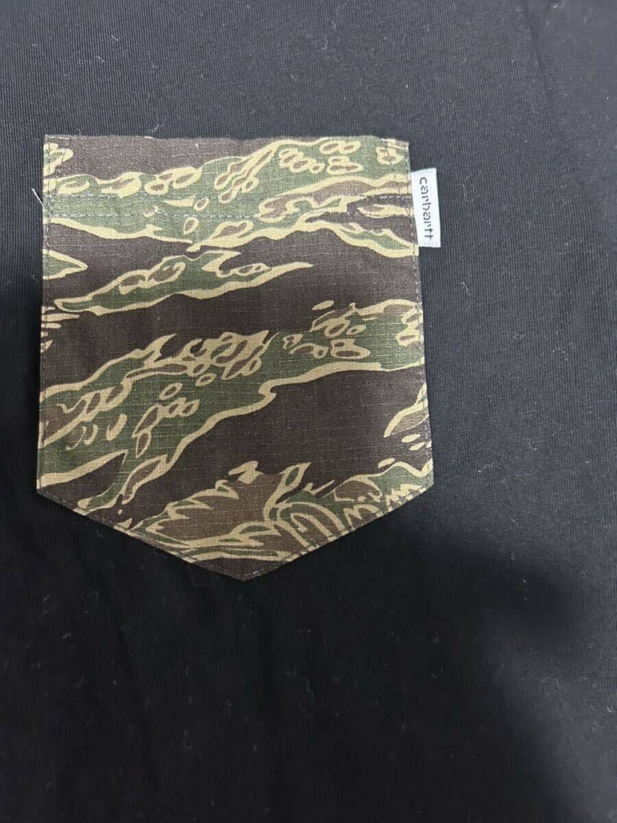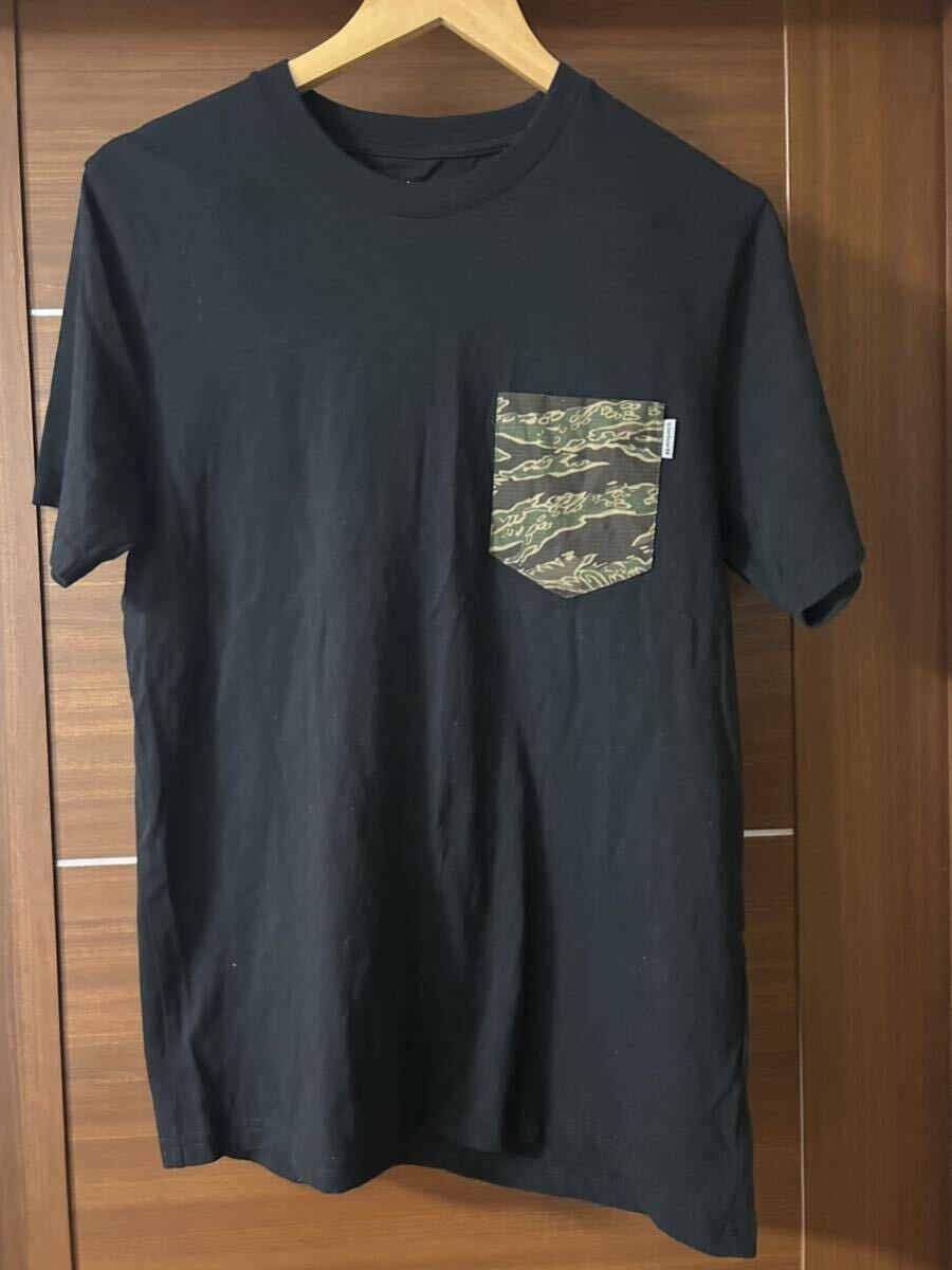 ポケットは、迷彩柄でアクセントになり、Tシャツ生地とは異なる生地が使用されています。