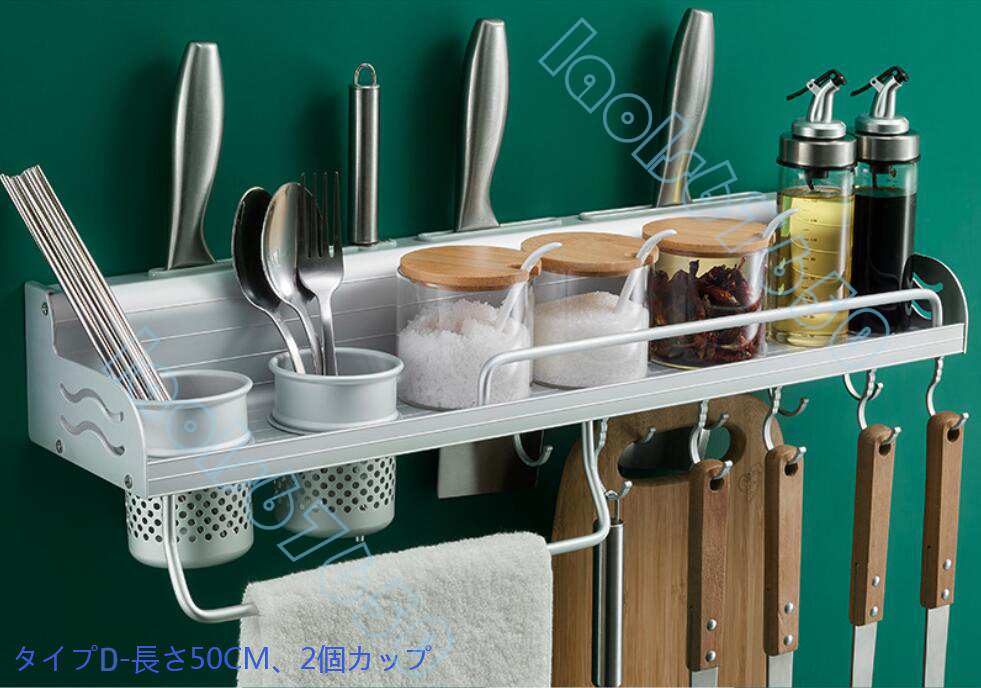 キッチン棚 壁掛け式 穴あき必要無し 収納 ナイフホルダー 多機能 家庭用 箸 キッチン用品ラック 長さ50CM、2個カップ