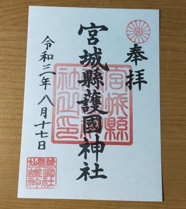◆宮城縣護國神社(宮城・仙台・仙台城)◆御朱印「宮城縣護國神社」 令和3年(2021年)8月 |
