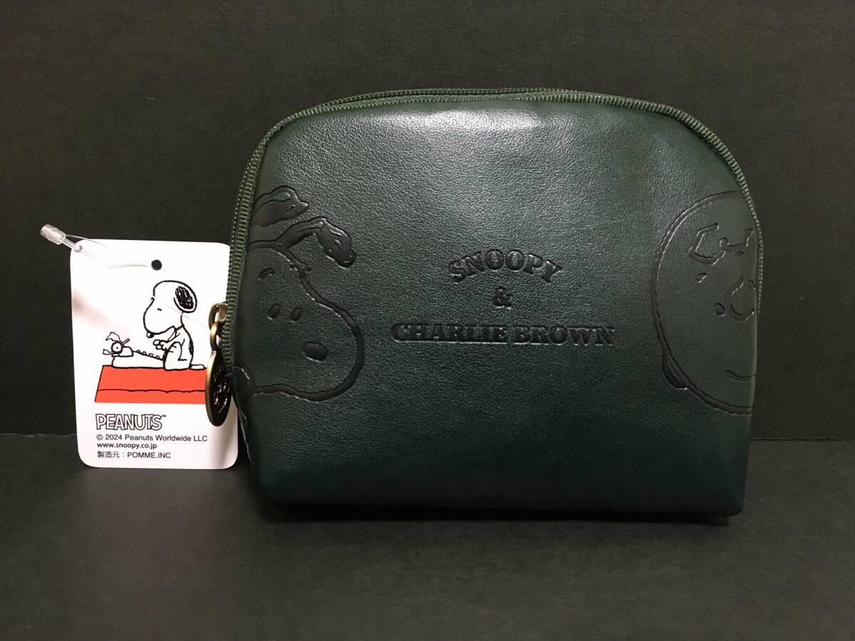 PEANUTS★スヌーピー ポーチ☆彡 スヌーピー&チャーリーブラウン ダークグリーン☆ マルチケース 新品 SNOOPY