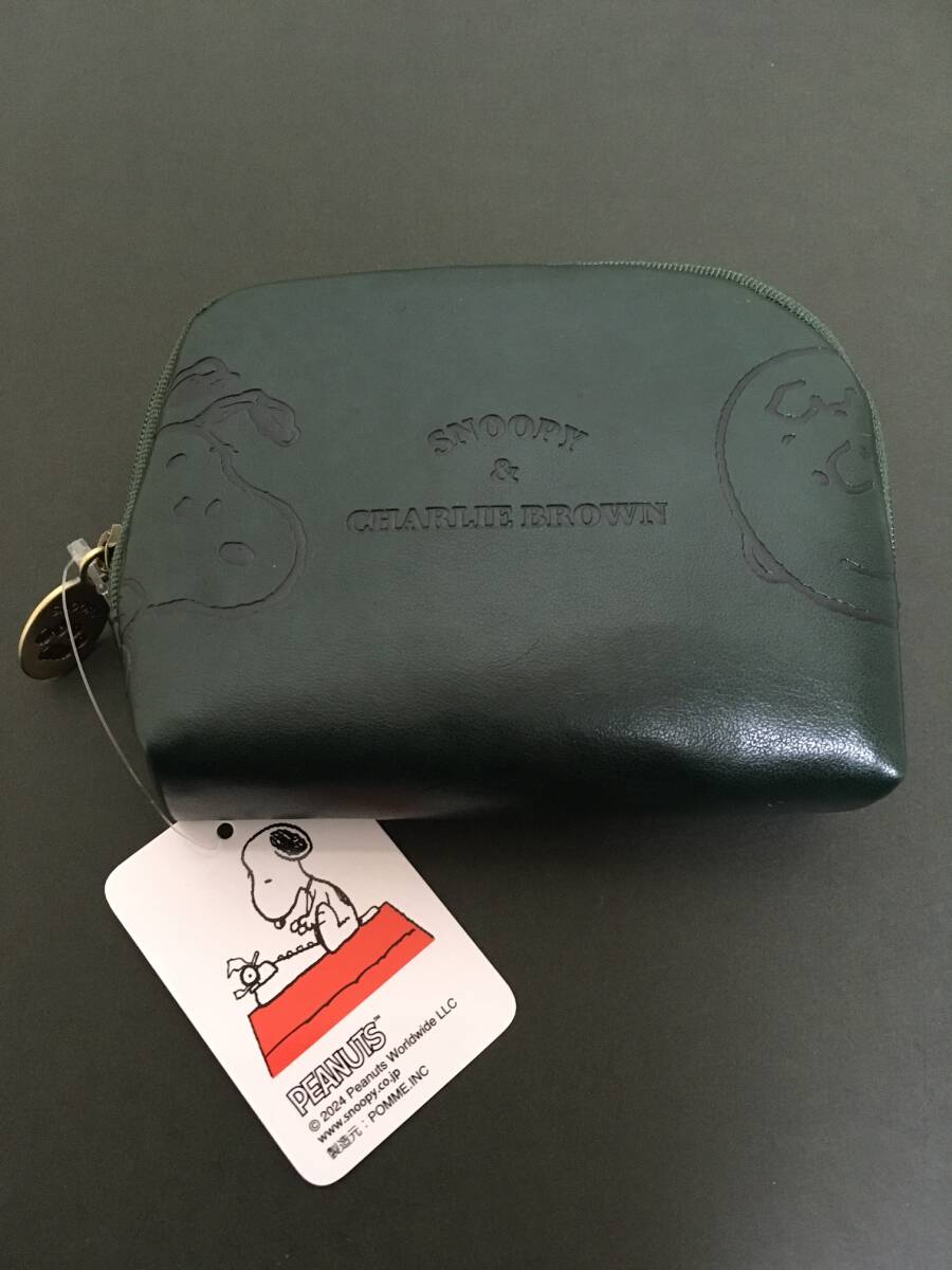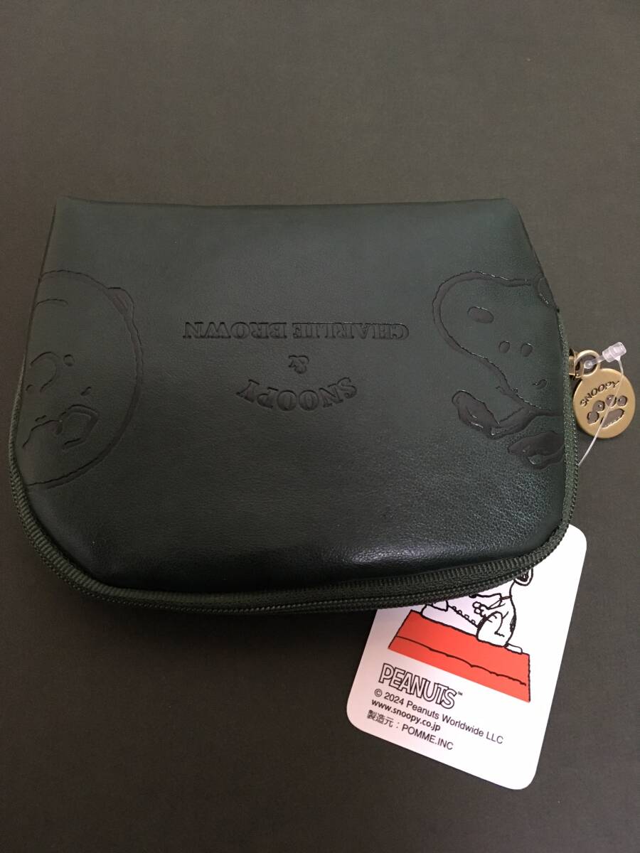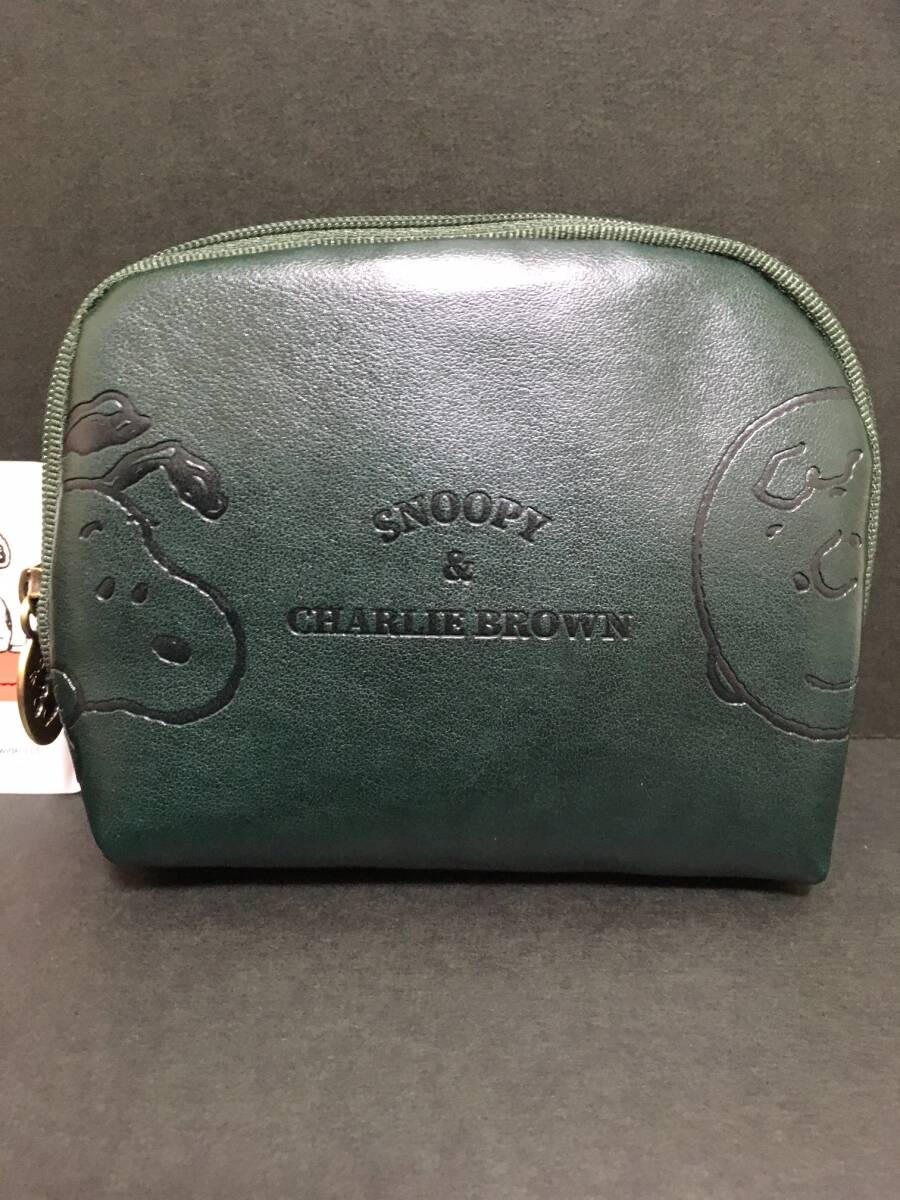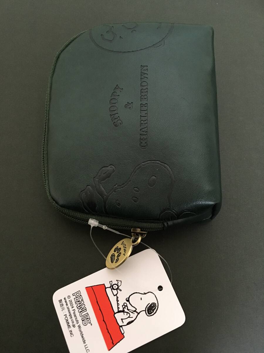 PEANUTS★スヌーピー ポーチ スヌーピー&チャーリーブラウン ダークグリーン色です☆彡