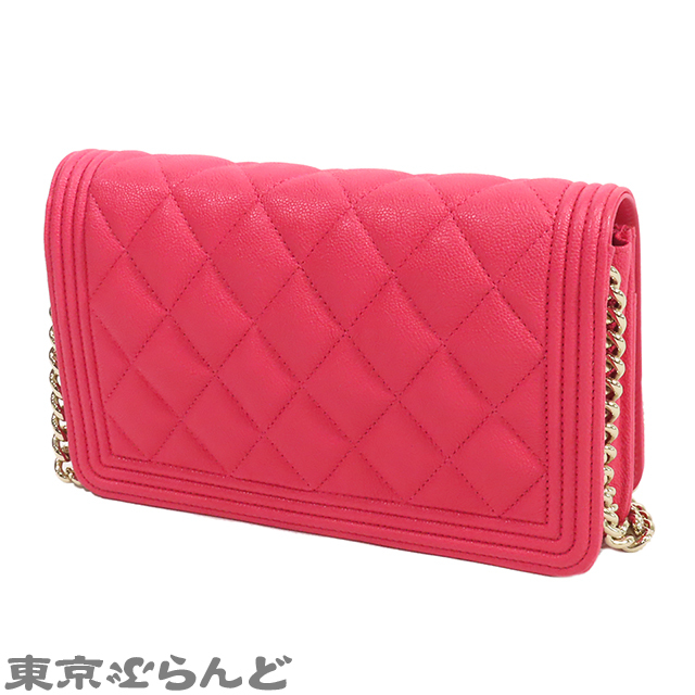 101790282 シャネル CHANEL ボーイシャネル マトラッセ チェーンウォレット 30番台 ピンク ゴールド金具 キャビアスキン 長財布 レディース