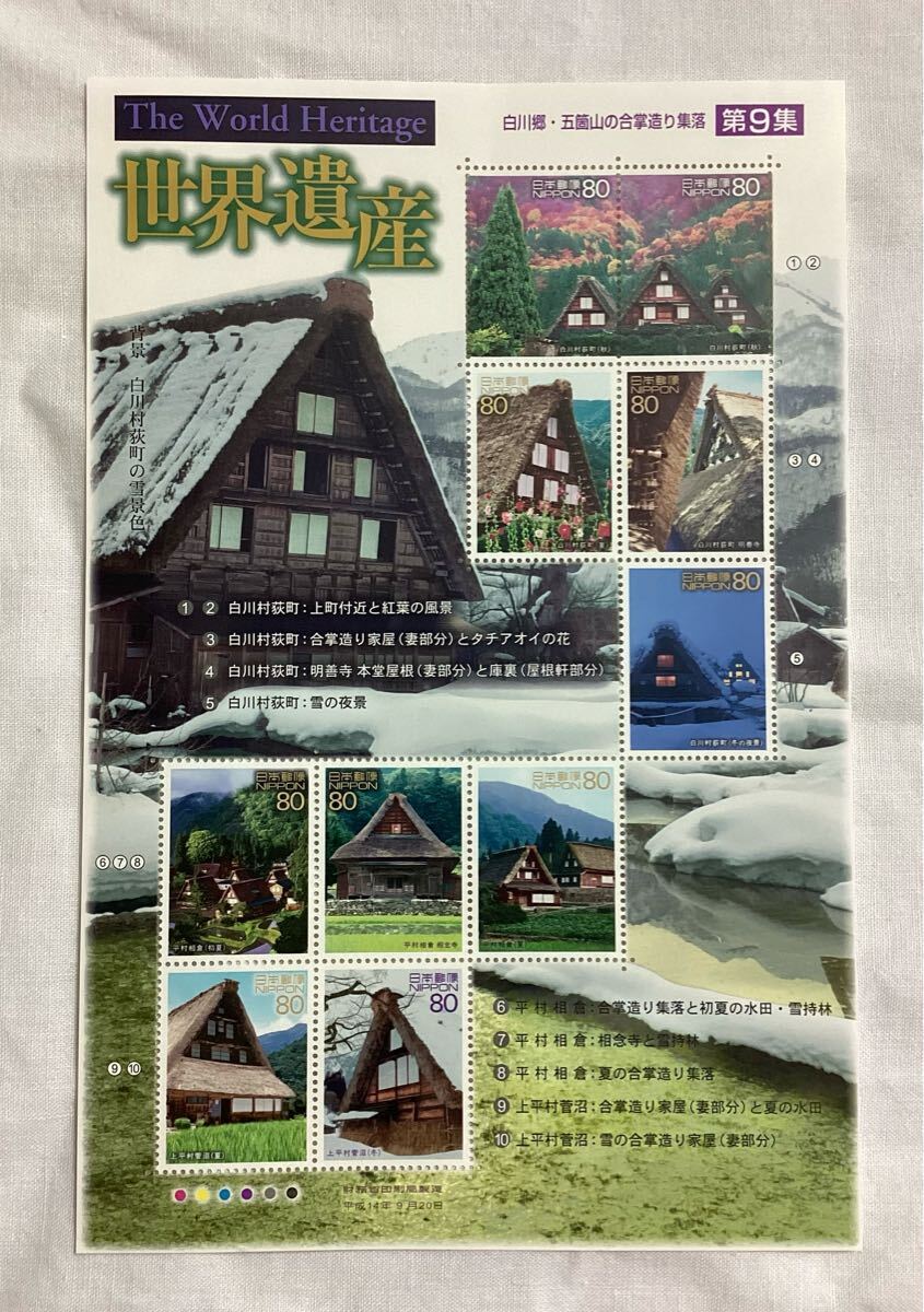 第2次世界遺産シリーズ 第9集 白川郷・五箇山の合掌造り集落の切手になります