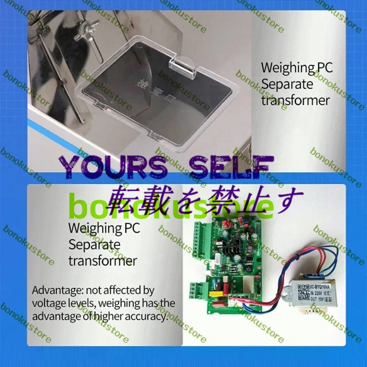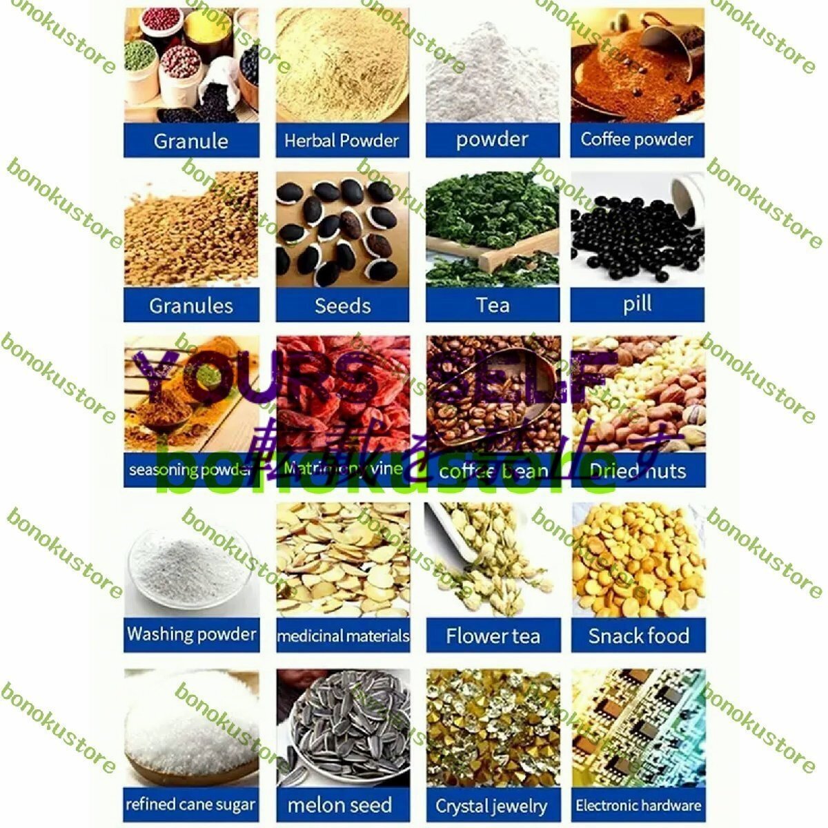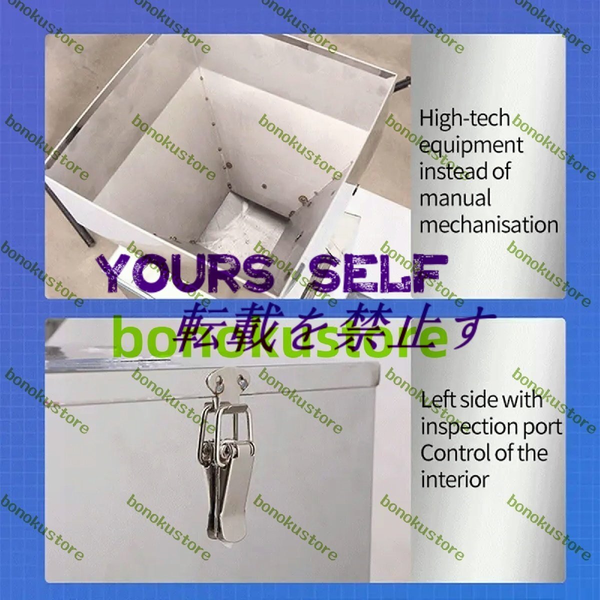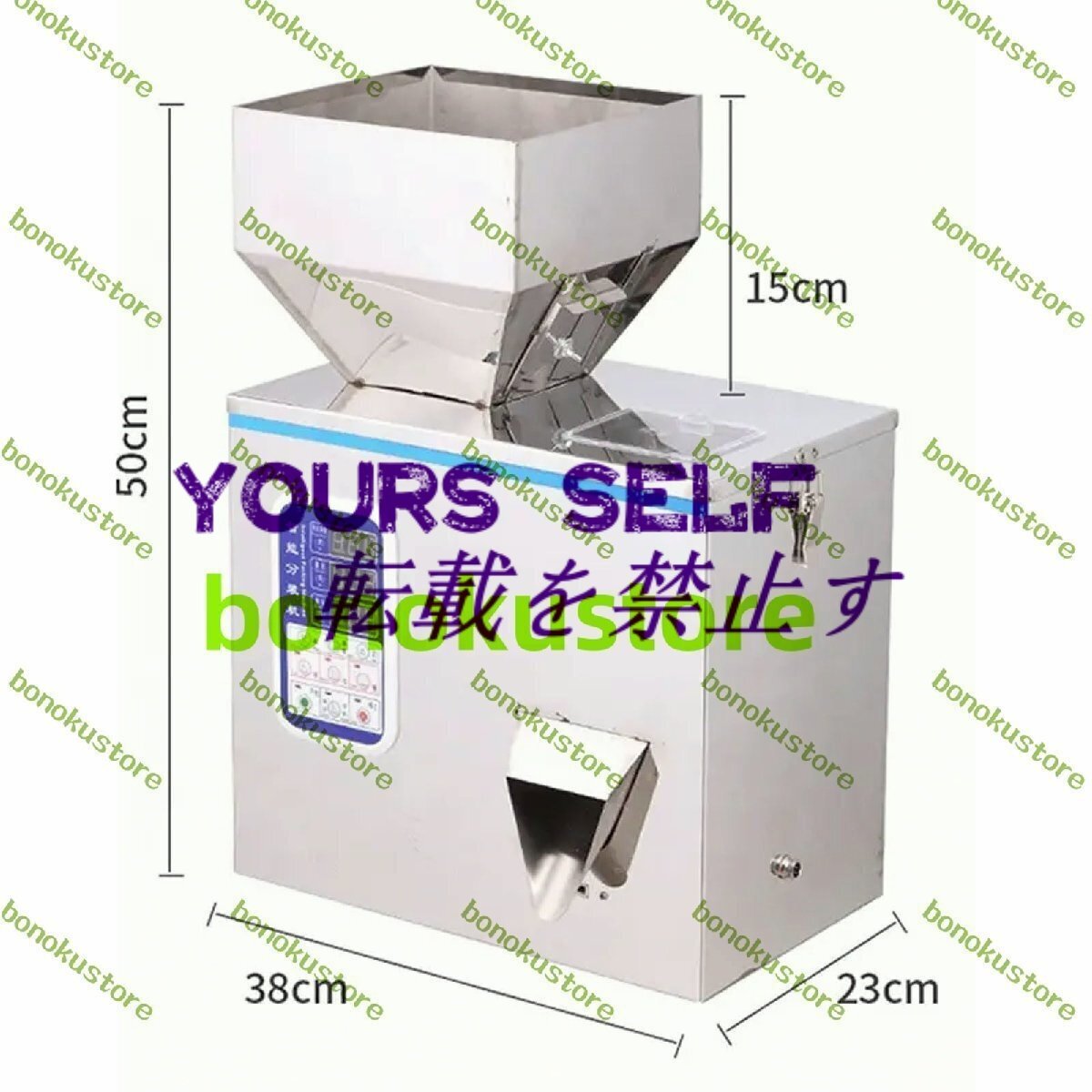 製品名: 粉末充填機 計量範囲: 2~120g 本体材質:食品グレードのステンレススチール 誤差範囲: 0.2g 電圧電力: 220V 電力: 180W 包装速度: 10~20回/分(材質により異なります) 商品サイズ: 38x23x50cm ホッパーサイズ: 20x15cm
