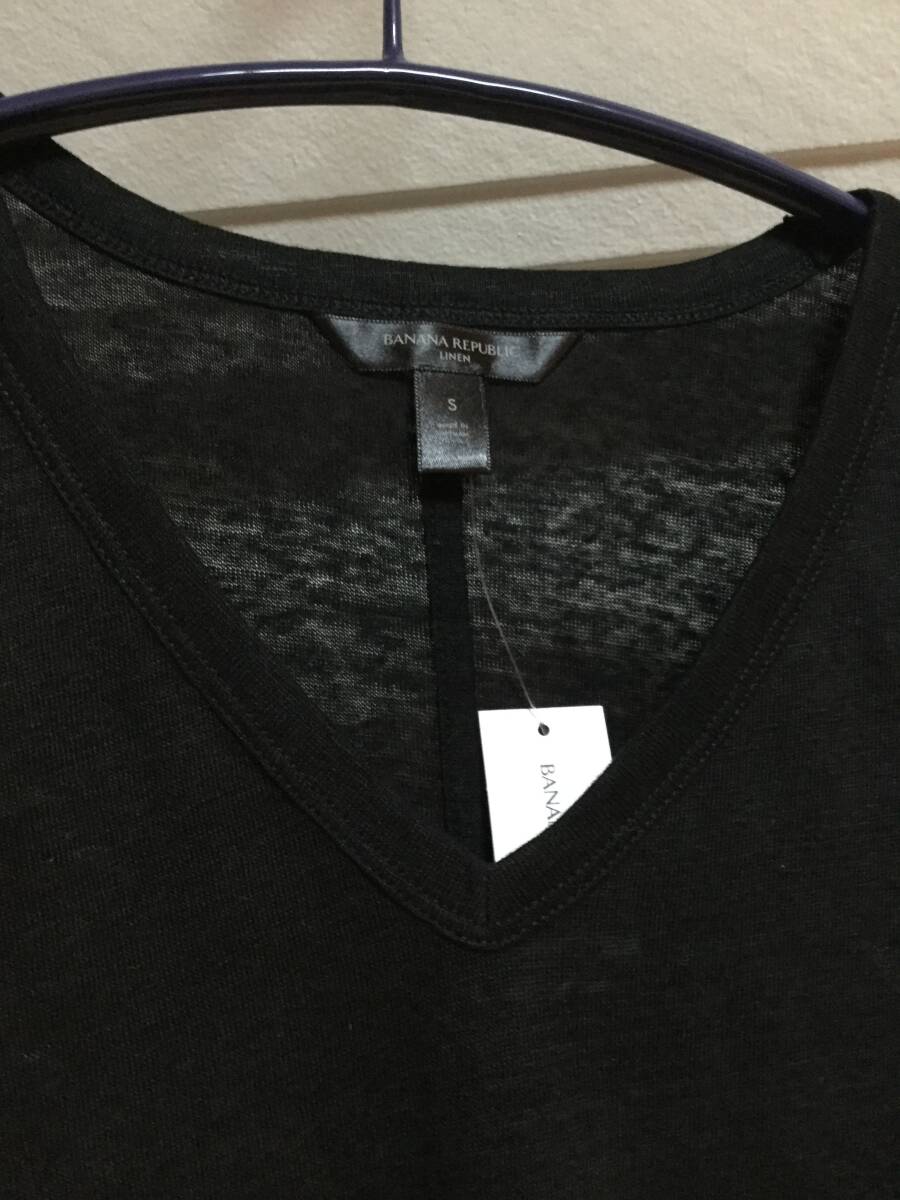 リネン 100% banana republic バナナ リパブリック 麻 タグ付き レディース トップス size S (M相当) 黒 vネック 定価5990円 #2