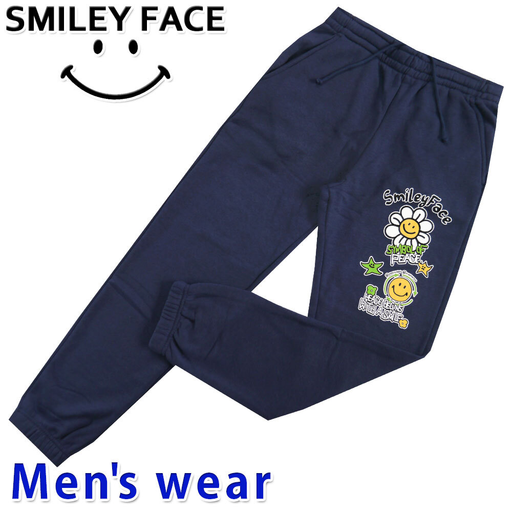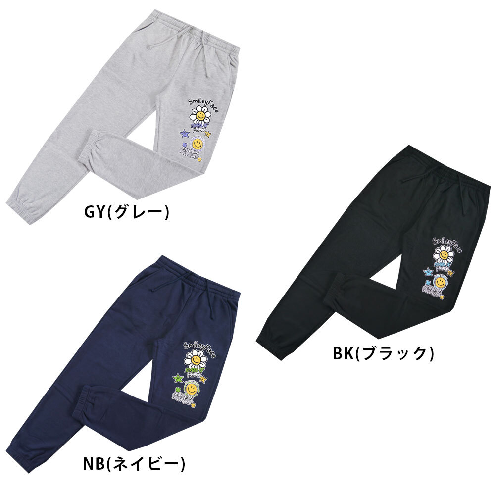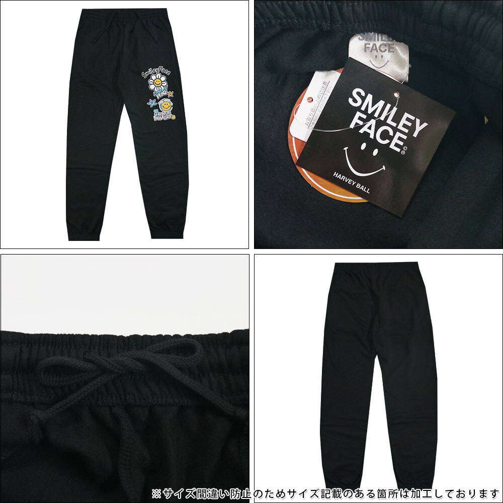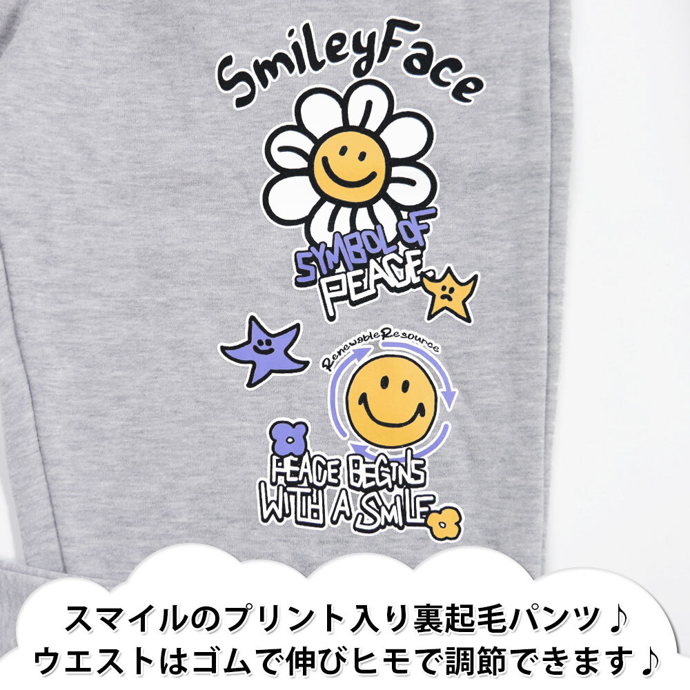 正規店仕入れの新品未使用品です 綿とポリエステル素材で、吸汗速乾に優れます スマイルのプリント入り裏起毛パンツ ウエストはゴムで伸びヒモで調節できます |