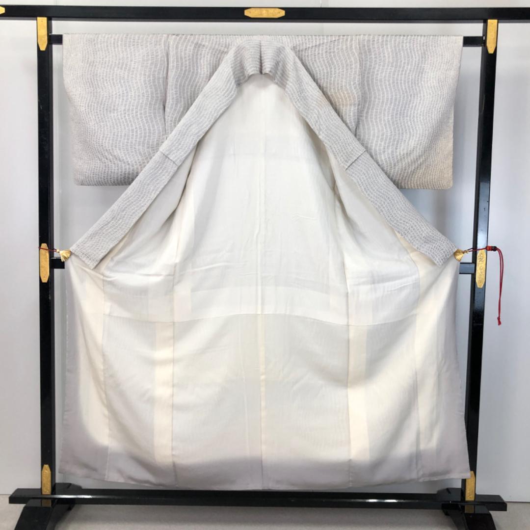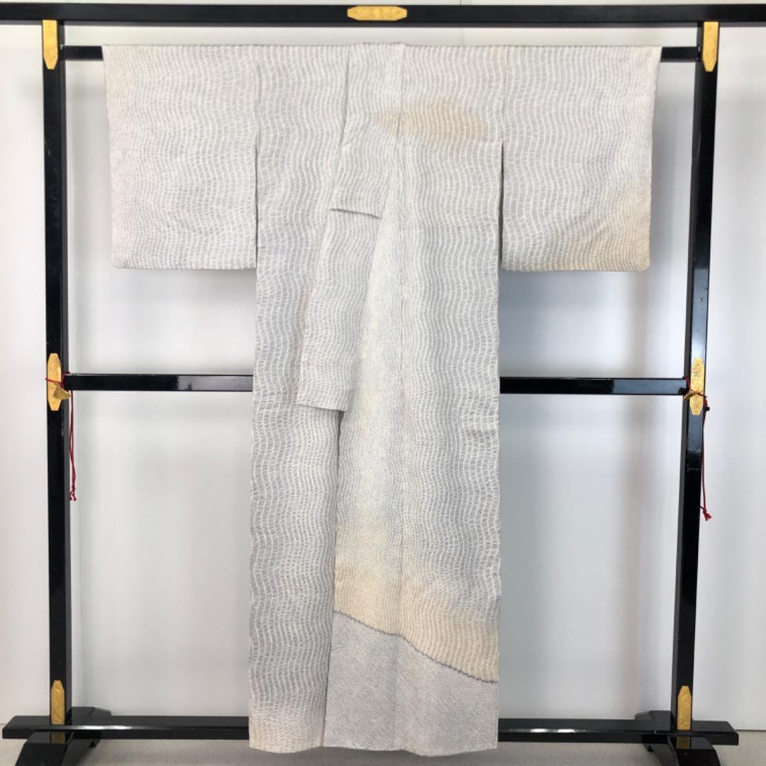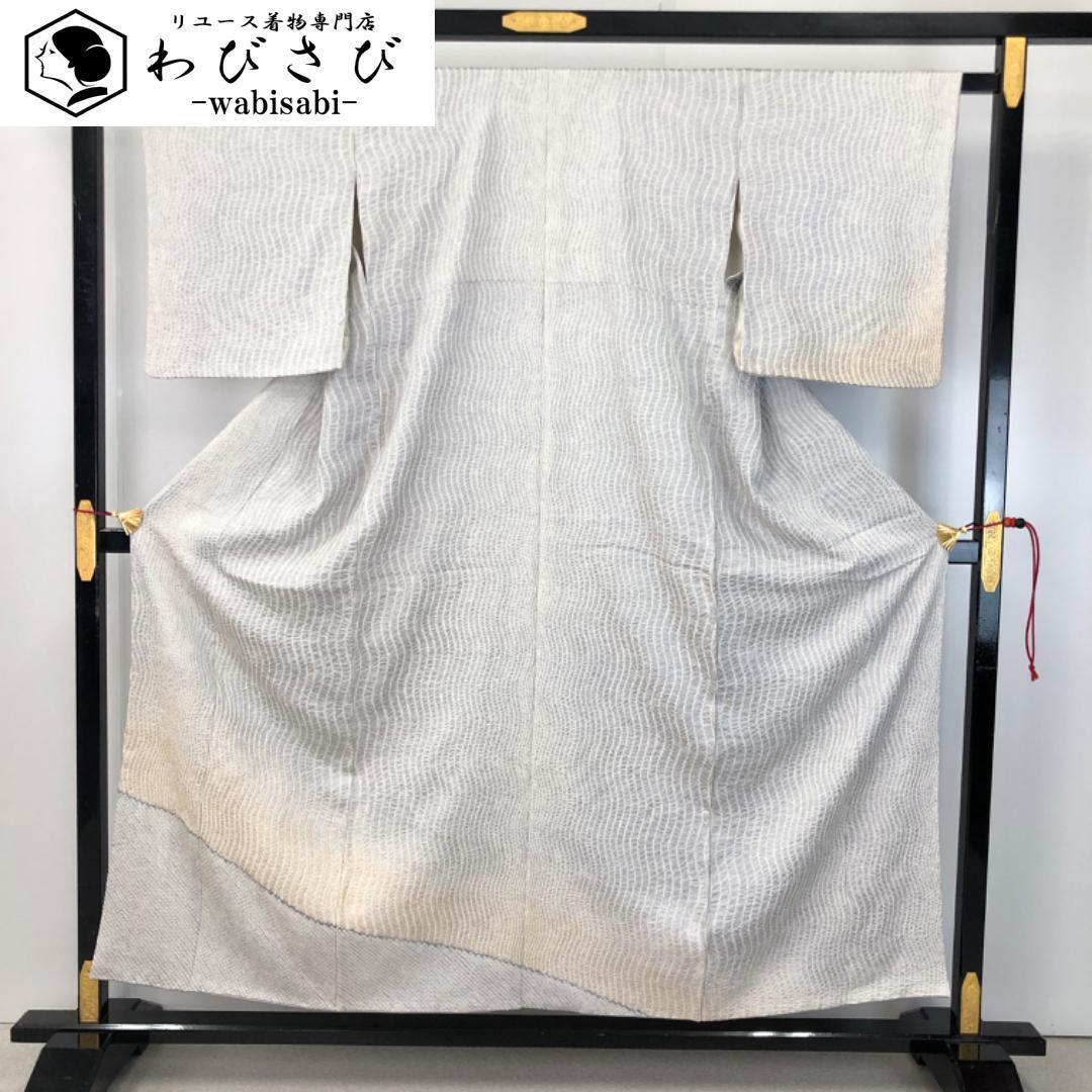 付下げ 総絞り 縦縞曲線模様 暈し 金彩 雲井鼠色 K-4632 着物 きもの kimono 和服 和装 中古 リサイクル着物 【送料無料】