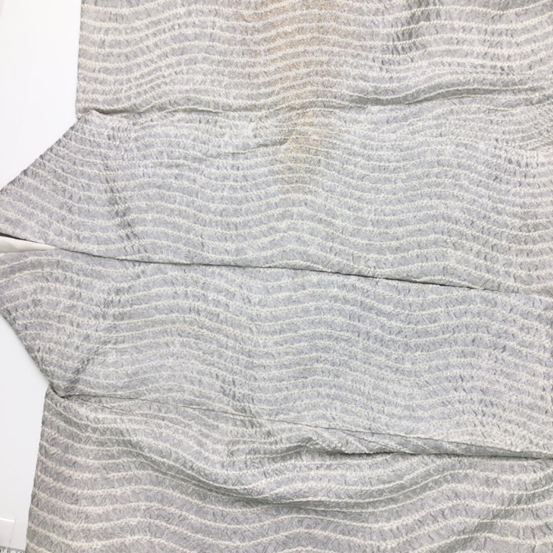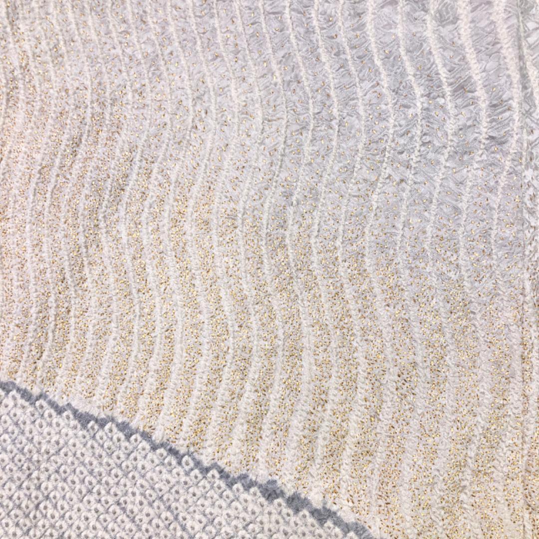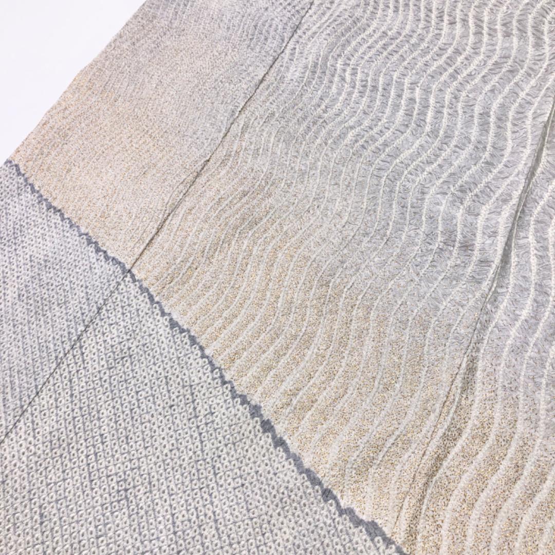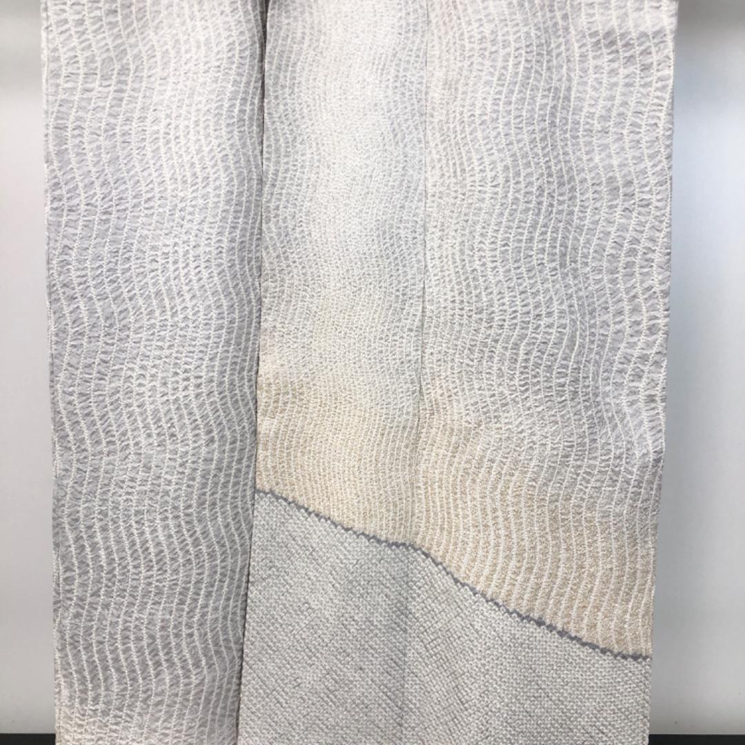 付下げ 総絞り 縦縞曲線模様 暈し 金彩 雲井鼠色 K-4632 着物 きもの kimono 和服 和装 中古 リサイクル着物 【送料無料】