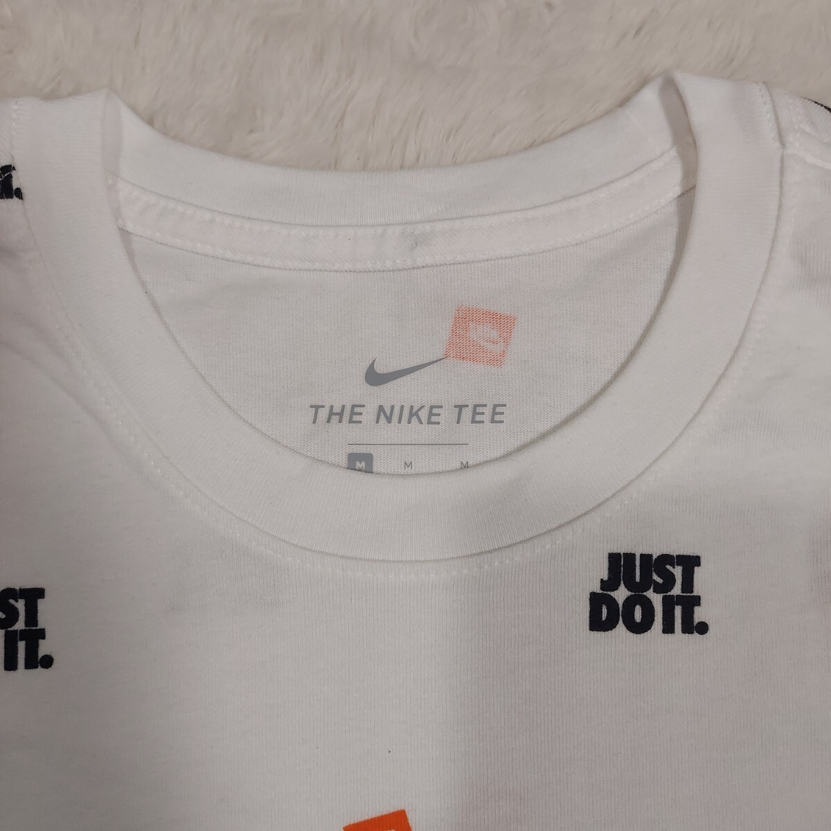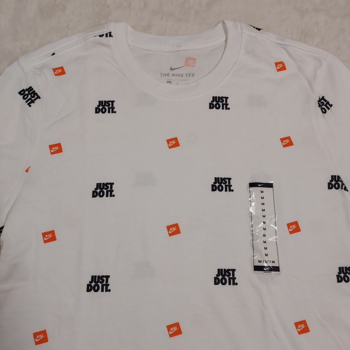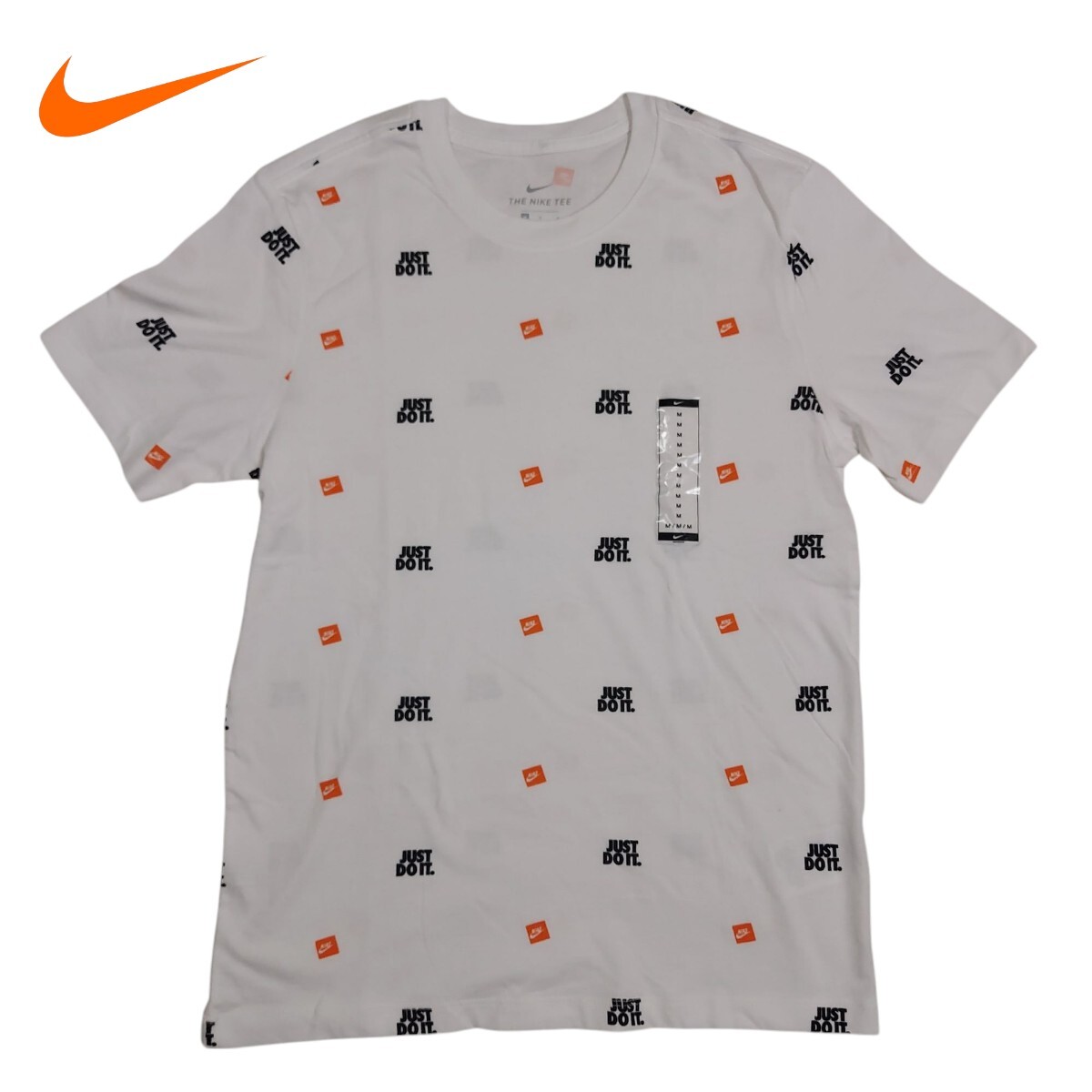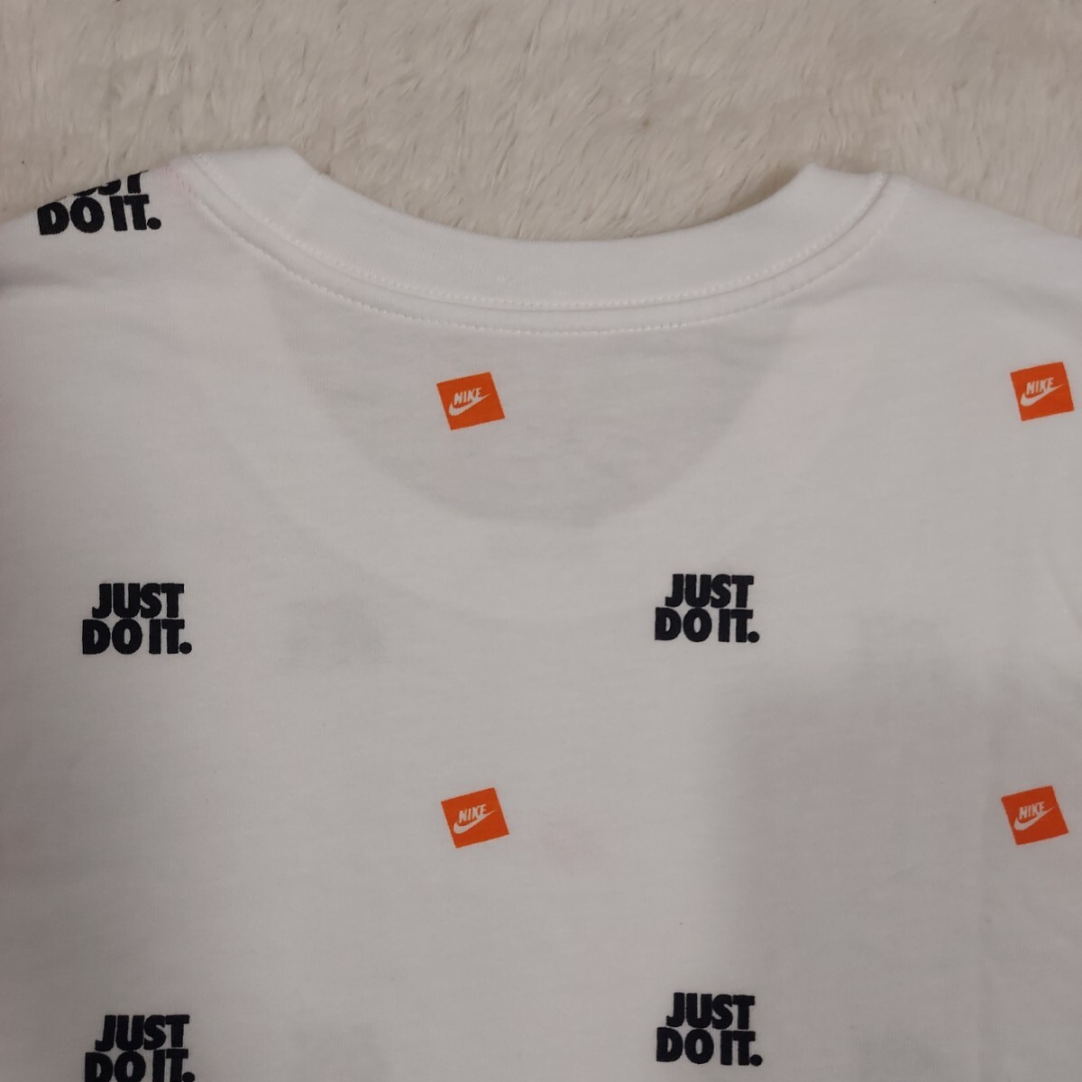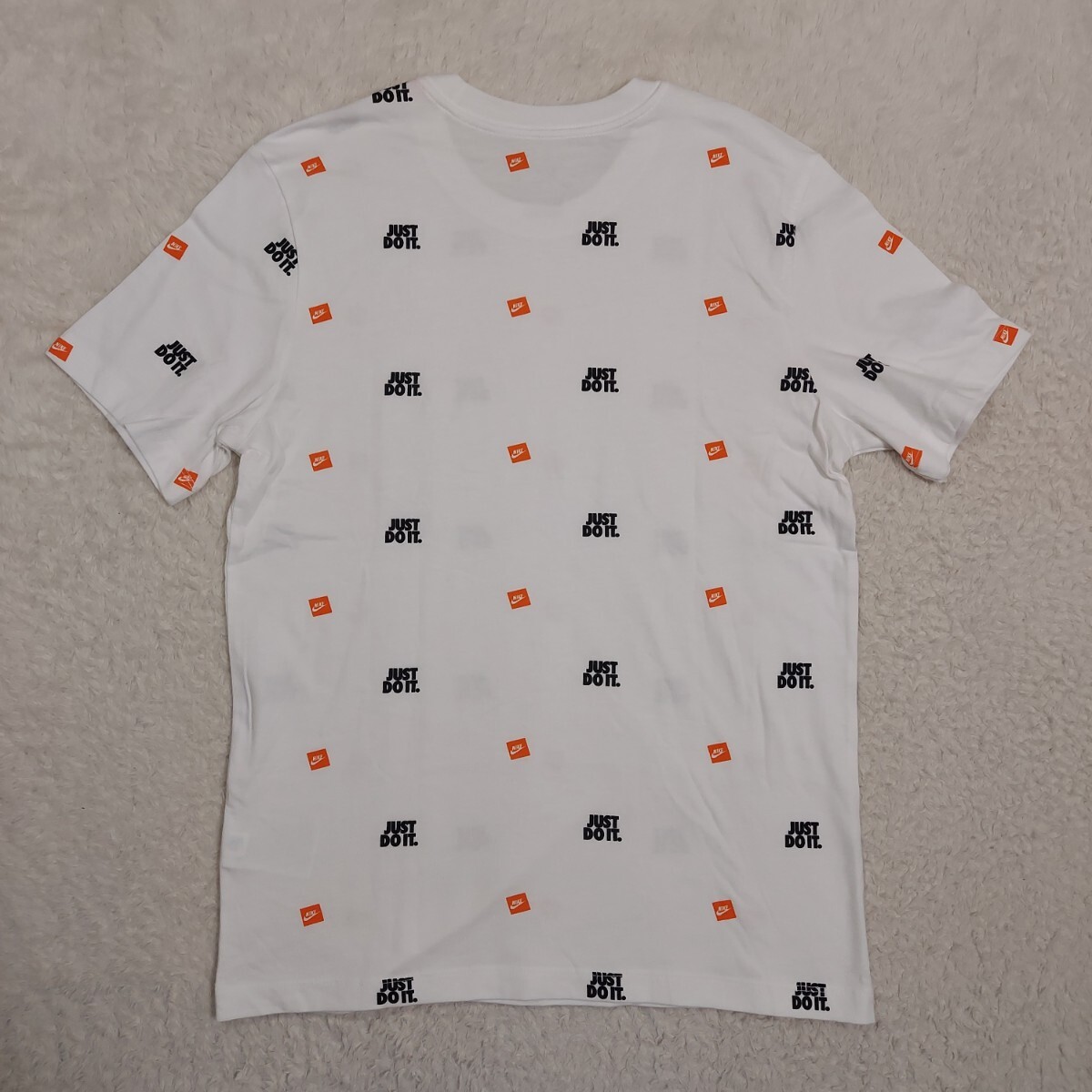 全体に「JUST DO IT」とスウォッシュロゴが散りばめられた総柄デザインです。