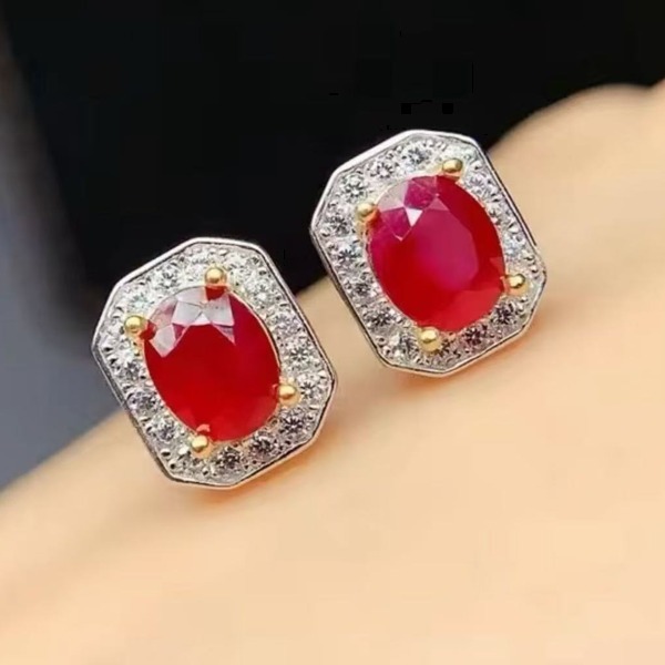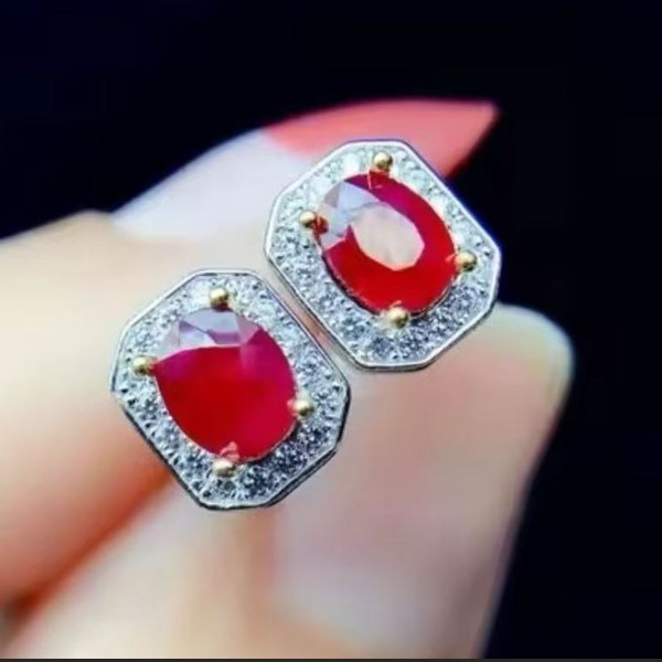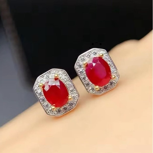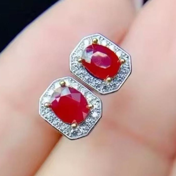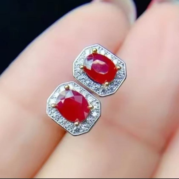 4x5mm 天然ルビー スタッド ピアス S925 スターリングシルバー ファインジュエリー 女性用