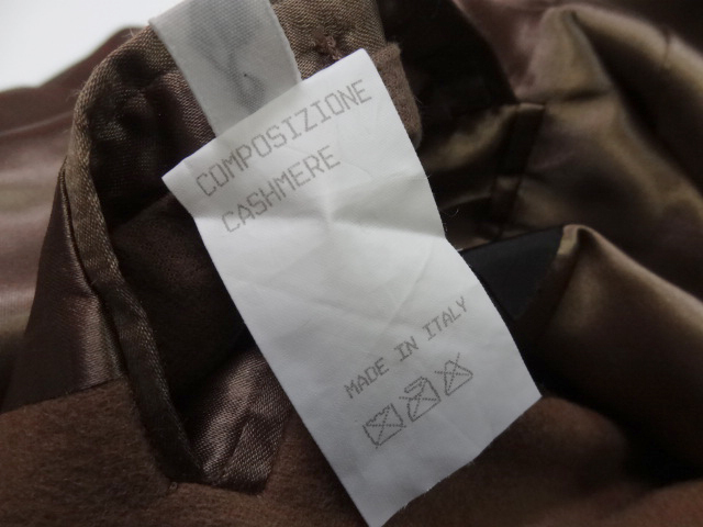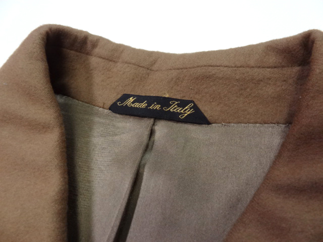 ビンテージ イタリア製 カシミア ハーフ ロング ジャケット ショート ステンカラー コート 比翼 サイズ 48 ベージュ ブラウン カラー 茶 色