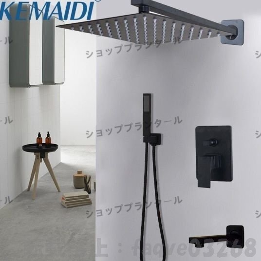 KEMAIDIバスルーム2wayLEDシャワー蛇口セット ブラック3機能 LEDシャワーヘッドミキサータップW 降雨ハンドシャワー