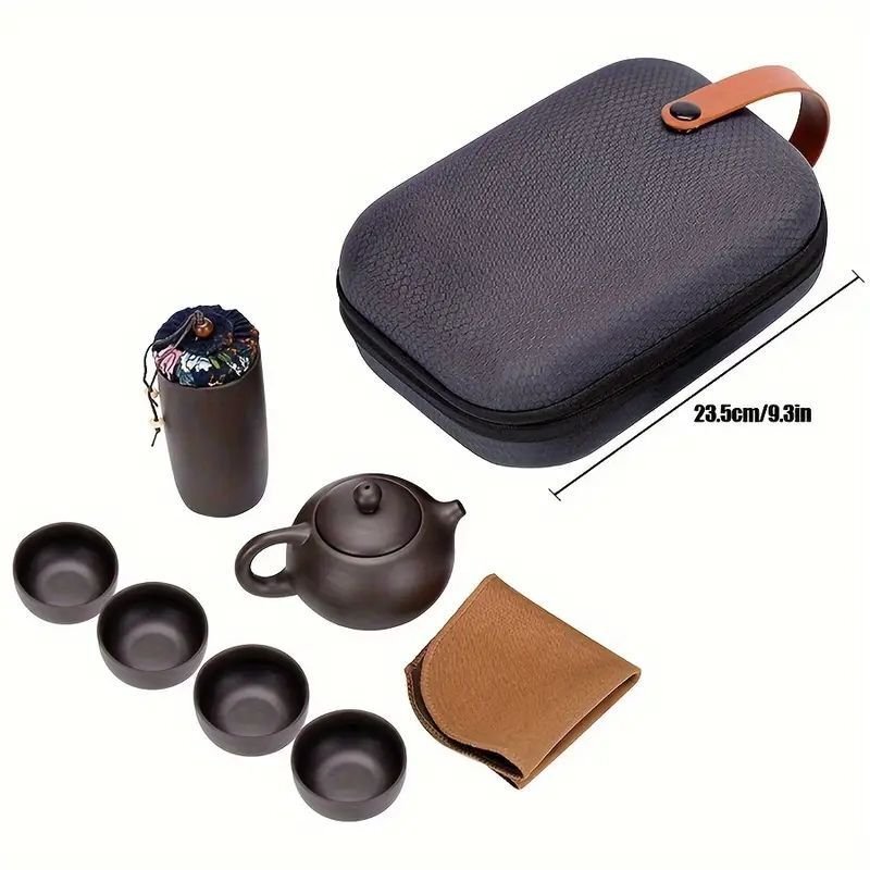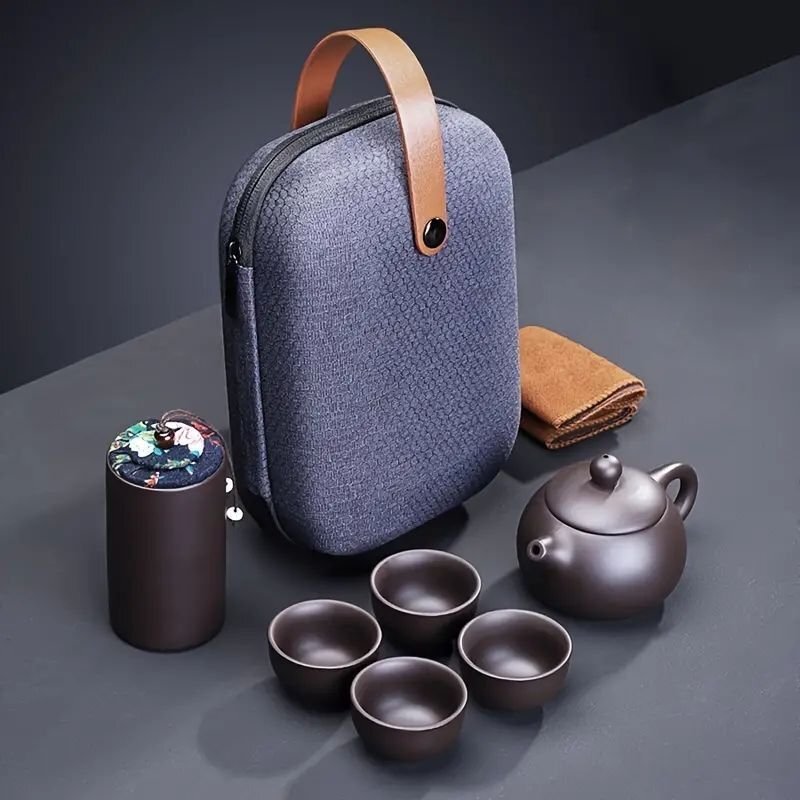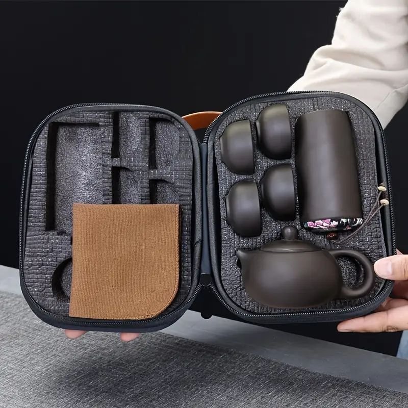 この高級パープルクレイポータブルカンフーティーセットは、持ち運びに便利でありながら、伝統的な茶芸の美しさを感じられるデザインです。コンパクトでスタイリッシュな収納ケース(サイズ:23.5cm×15cm×10cm)に、茶壺、4つの茶杯、お茶キャニスター、お手入れ用タオルが美しく収まっています。 茶器はすべて厳選されたパープルクレイセラミックを使用し、滑らかな質感と耐久性を兼ね備えています。茶壺は優れた保温性と茶葉の風味を最大限に引き出すデザインで、茶杯は手に馴染む丸みを帯びたフォルムです。お茶キャニスターは茶葉を新鮮に保つための密封デザインとなっており、タオルは使いやすい高品質な素材で作られています。 このセットは家庭、オフィス、レストラン、さらには旅行先でもお使いいただけるポータブルデザインが特徴です。キャリーケースは耐久性が高く、スタイリッシュなレザーハンドル付きで、どこにでも簡単に持ち運べます。贈り物としても最適で、茶芸愛好者や日常生活でゆったりとしたティータイムを楽しみたい方におすすめです。