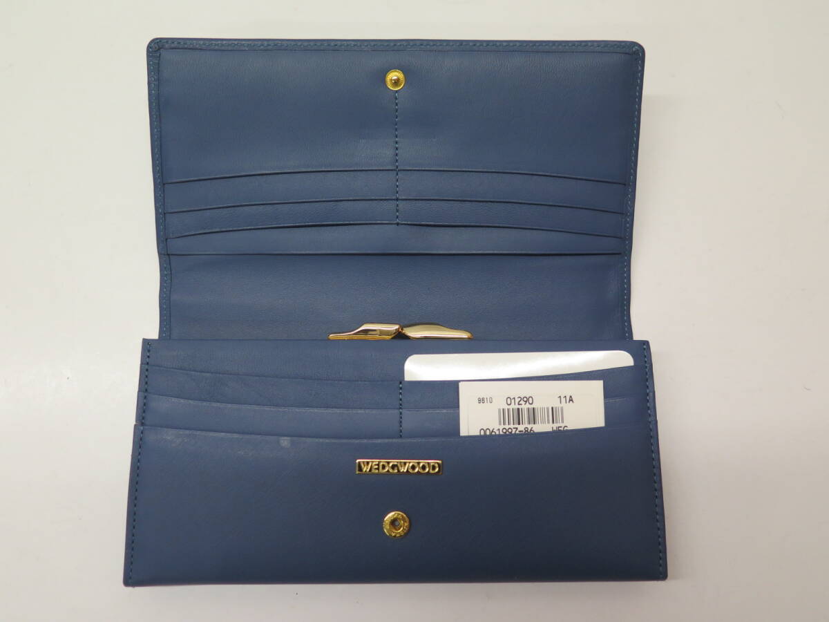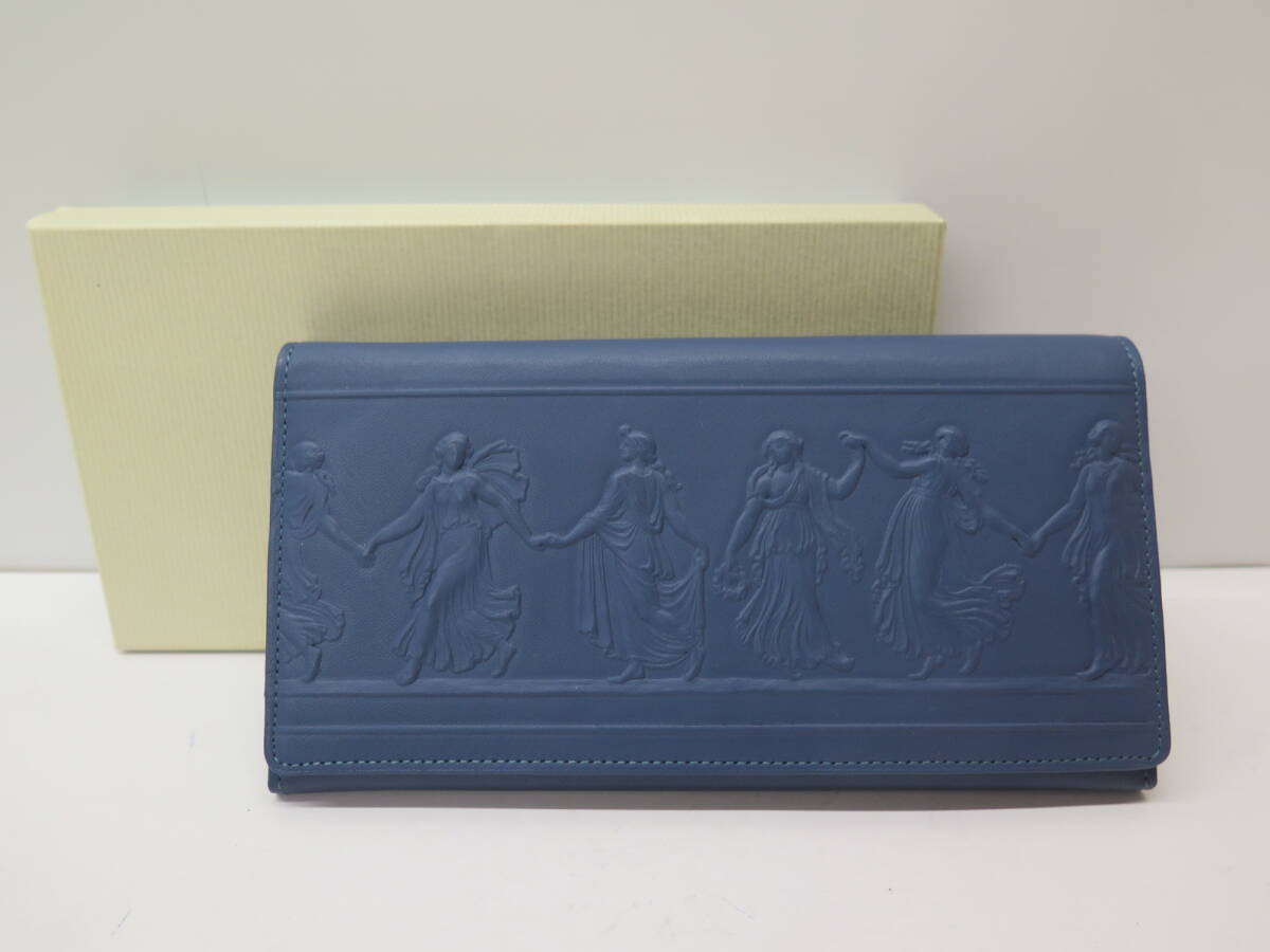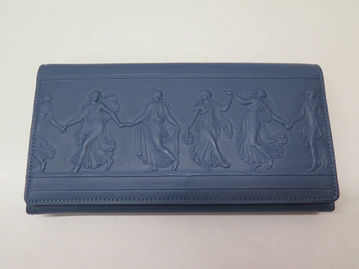 未使用保管品 WEDGWOOD ウェッジウッド 牛革 長財布 レリーフ柄 ブルー系