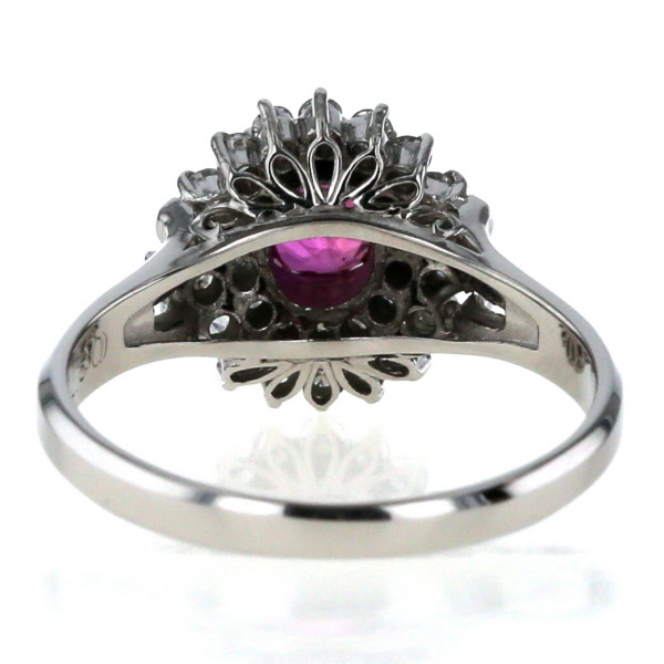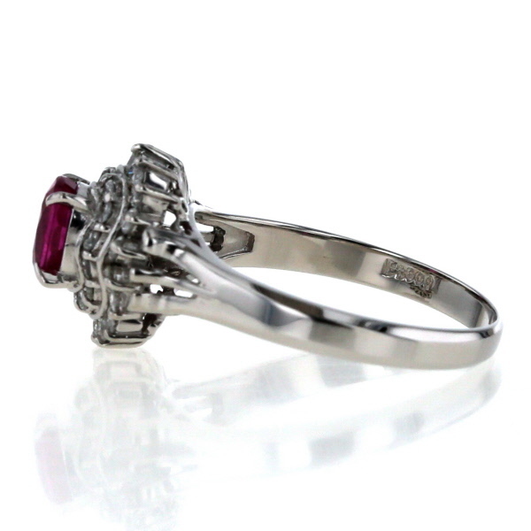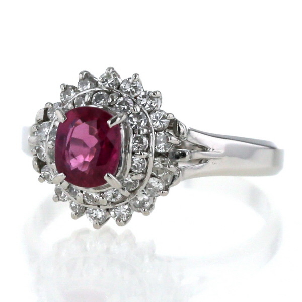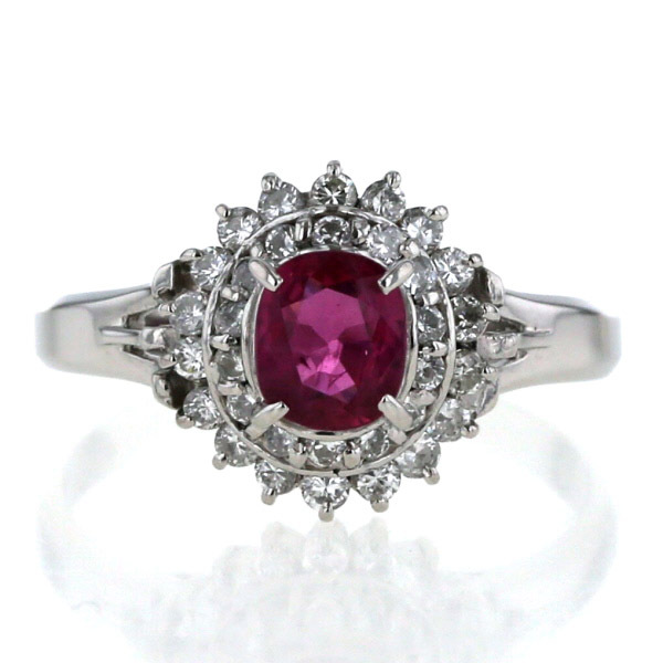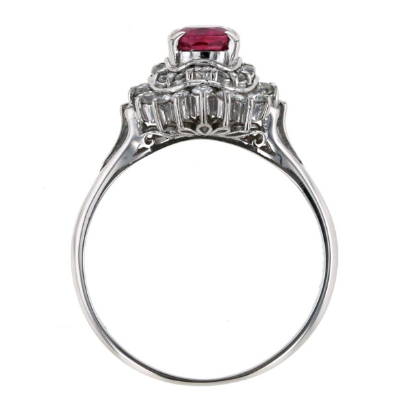 商品紹介 | 鮮やかなオーバルカットのルビーをメインに、二重にダイヤモンドが取り巻く、プラチナのリングです。 深みのあるルビーの赤色と、二重に輝くダイヤモンドの光が、より一層華やかでゴージャスな印象を与えます。 指元に存在感を放ち、特別な装いを引き立てるリングです。 |