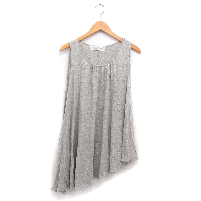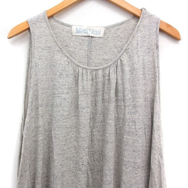 ミディウミ MidiUmi 綿麻 チュニック ノースリーブ アシンメトリー ギャザー グレー 灰 /FT33 レディース