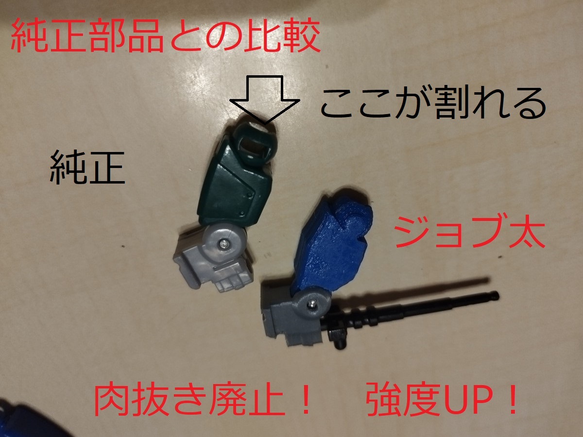 そこで、ひざ下も含めて代替部品を作成しました。それがこちら「ジョブ太Mk2」。