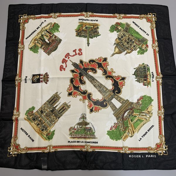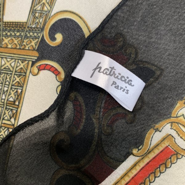 1円〜 Patricia パトリシア スカーフ 白 黒 パリ ポリエステル C3858
