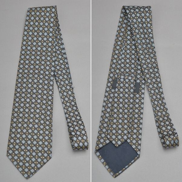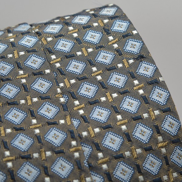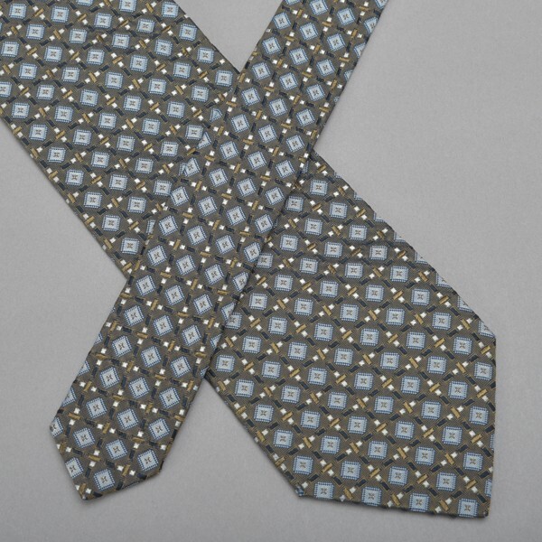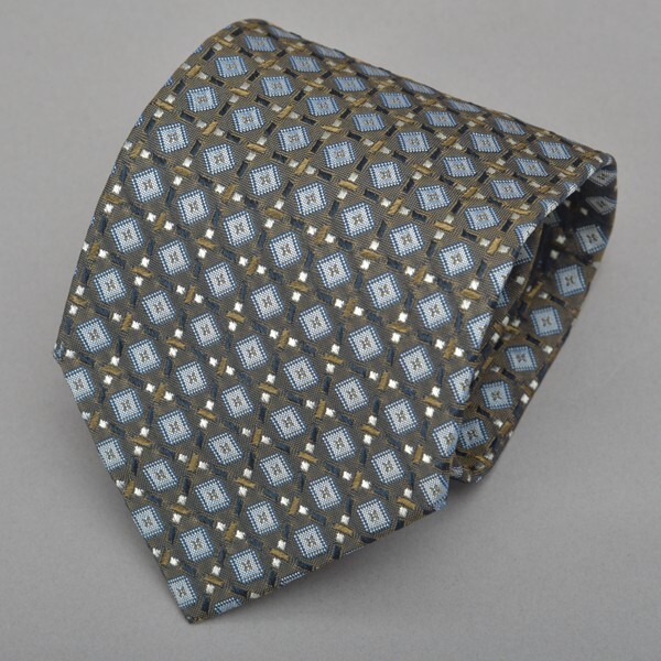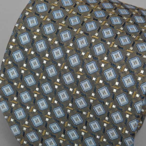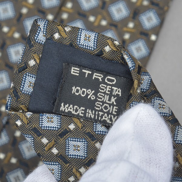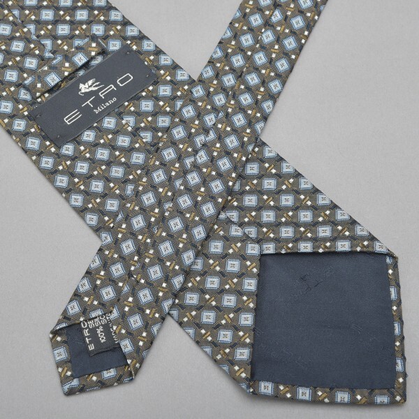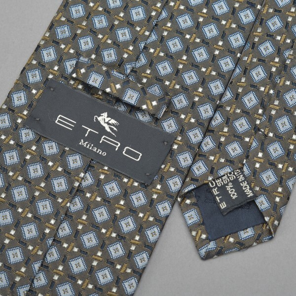 極美品 ETRO エトロ ネクタイ ブルー カーキ ダイヤ柄 イタリア製 総柄 光沢感 紳士 スーツ フォーマル 制服 ブランド /061009-76/0