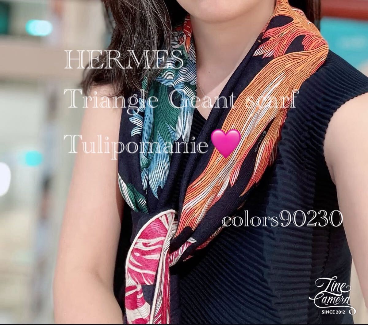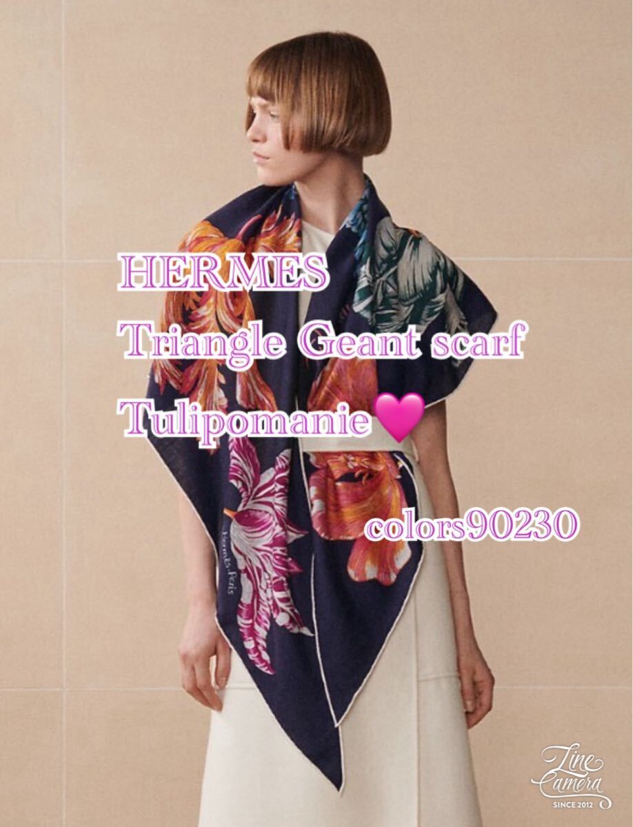 完売入手困難!未使用 エルメス トライアングルジェアン カシミヤシルク スカーフ ストール カレジェアン カシシル チューリップマニア