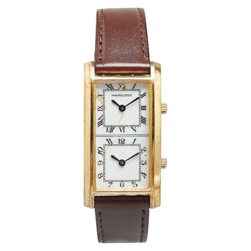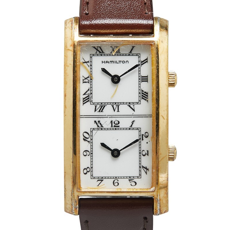 ハミルトン アメリカントラベラー デュアルタイム 腕時計 6232 クオーツ ホワイト文字盤 ステンレススチール レザー HAMILTON 【中古】