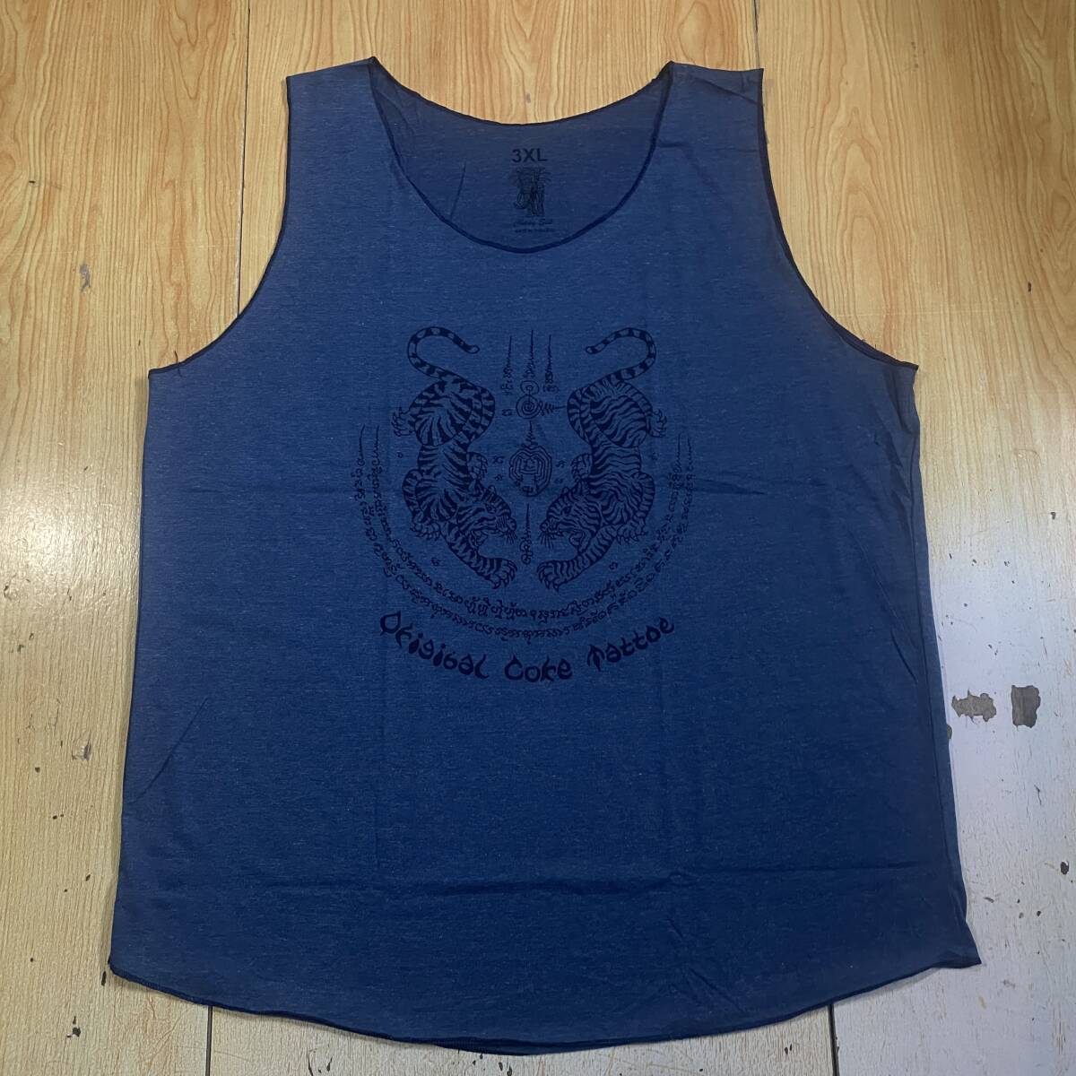 新品・即決・クリックポスト発送・タイの伝統的な刺青・タトゥー・'サックヤン・虎'のタンクトップ・杢ブルーグレー・2XL