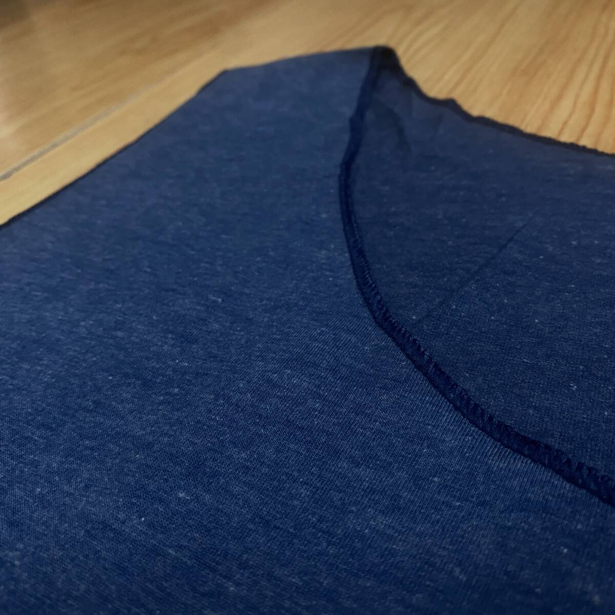 襟、アームホール、裾口はロック始末の切りっぱなし風の仕様です。