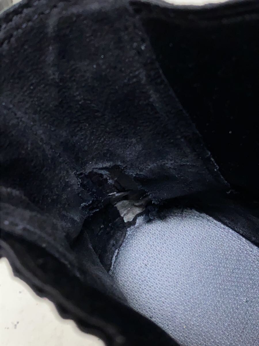 ヒールがスレて削れており、内側かかと部分が破損しております。 |