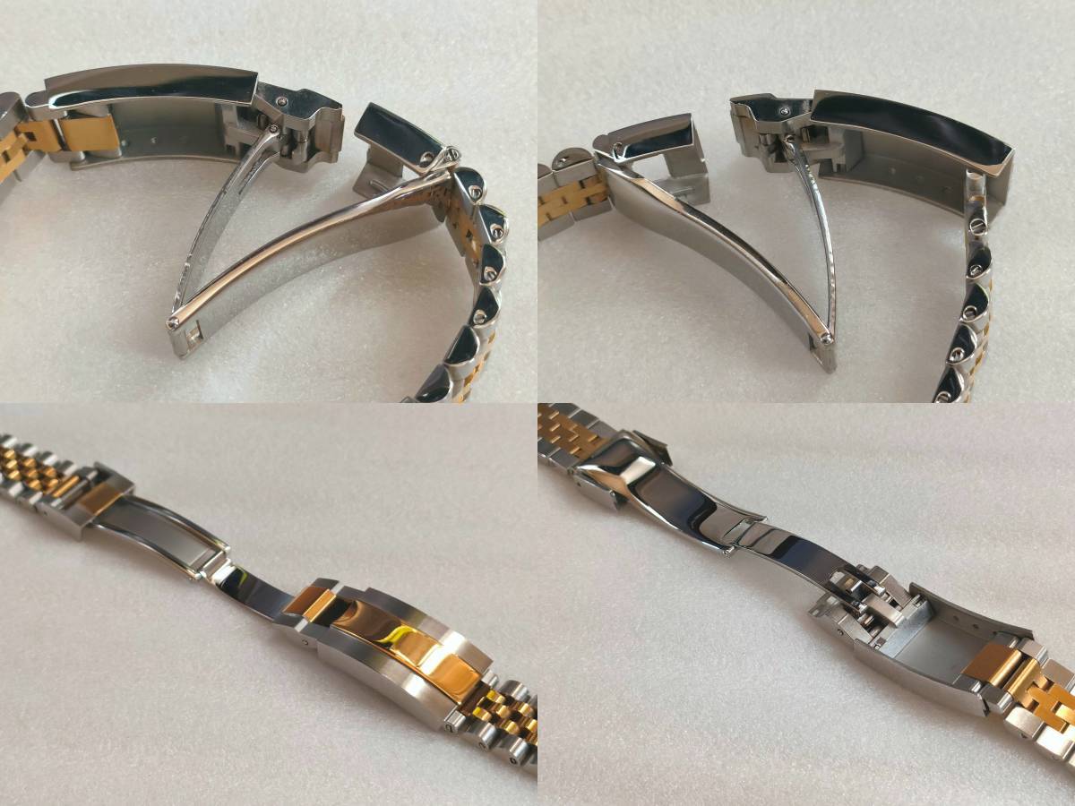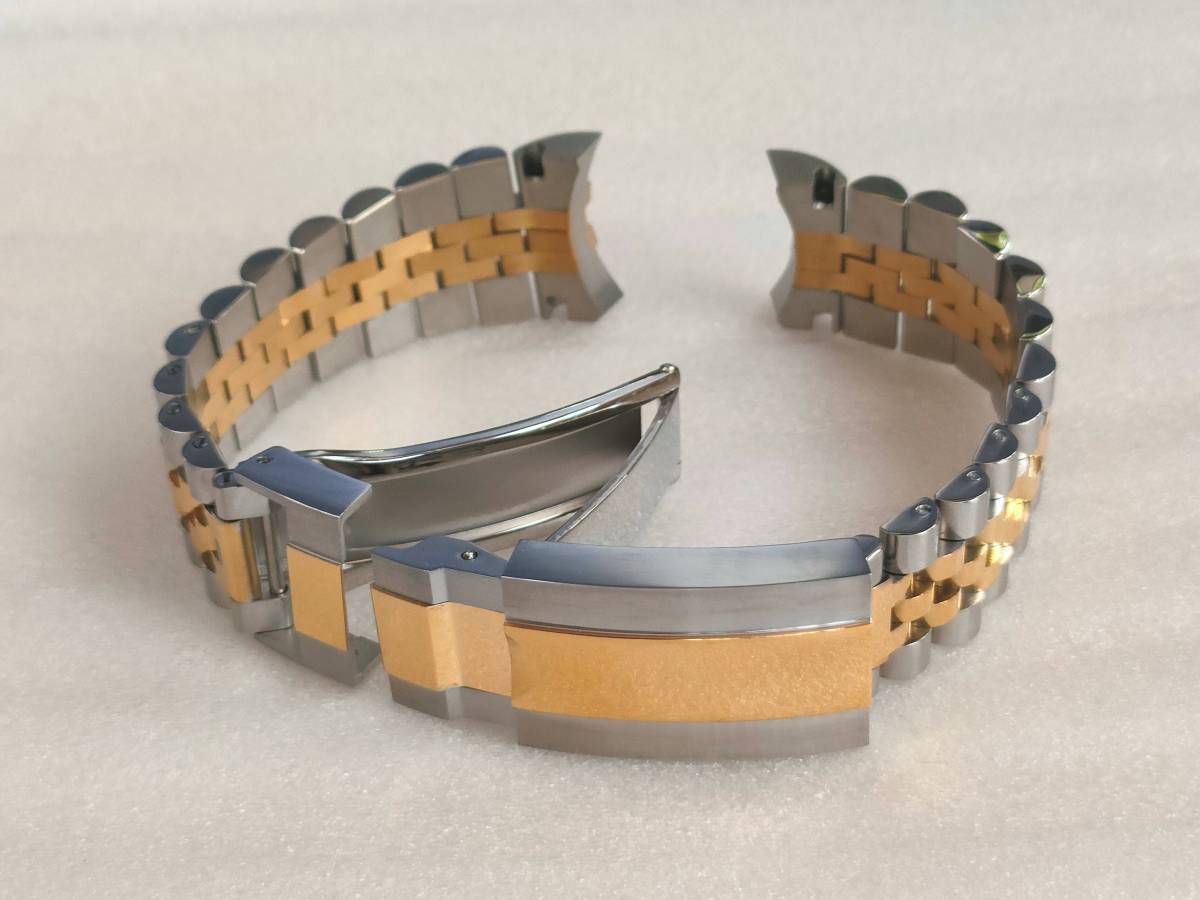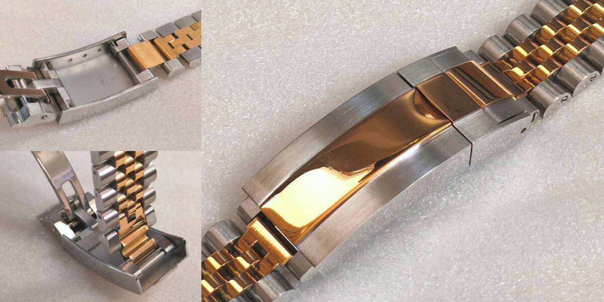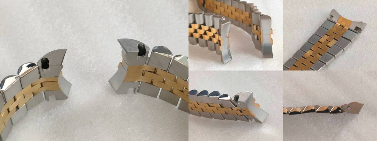 | 腕時計ロレックス等、互換用ベルトになります (訳あり)以下の理由によりジャンク扱いになります 若干の傷がございます(傷のイメージ:画像8) 中板に若干の傷、歪みがございます(傷のイメージ:画像9) エンドリンクの形状は画像でご判断ください コマは8個まで取り外し可能です(マイナスネジ) ※写真の色合いが濃くなっておりますが暗めのゴールドになります イージーリンク搭載 【サイズ】 長さ 185mm(調整可能) ラグ幅 20mm 尾錠幅 16mm 取付け幅 9mmバックル 40mm 【カラー/素材】コンビゴールド/316Lステンレス(センターポリッシュ) 【重量】 72g 【付属品】 バネ棒外し マイナスドライバー バネ棒 20mm 3本 送料無料 迅速・丁寧に発送いたします ※機器の都合により色合いが異なります ※エンドリンクの研磨加工が必要になる場合がございます ※サイズは若干異なります ※機種により取付けできない場合がございます | |||