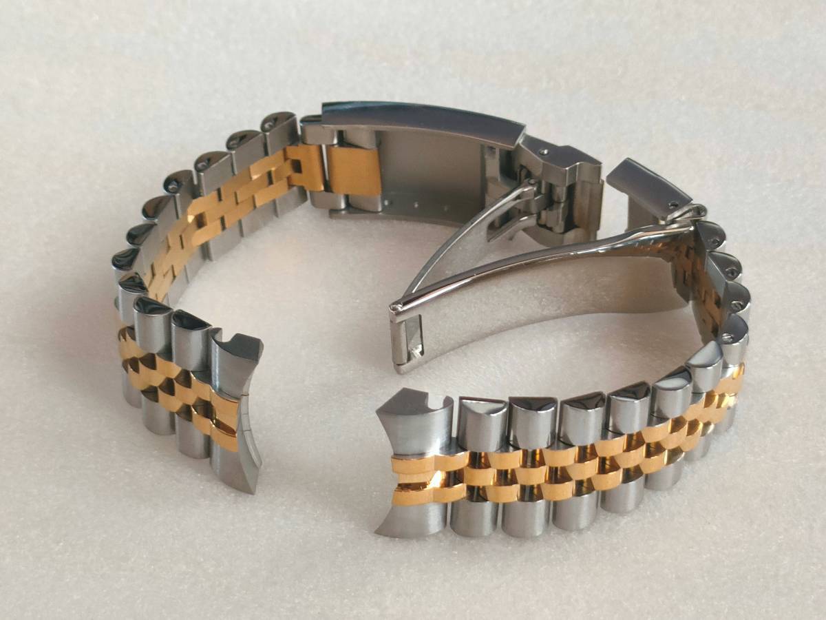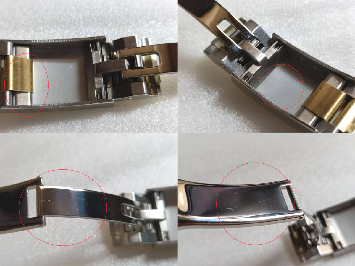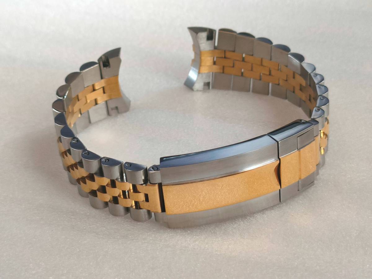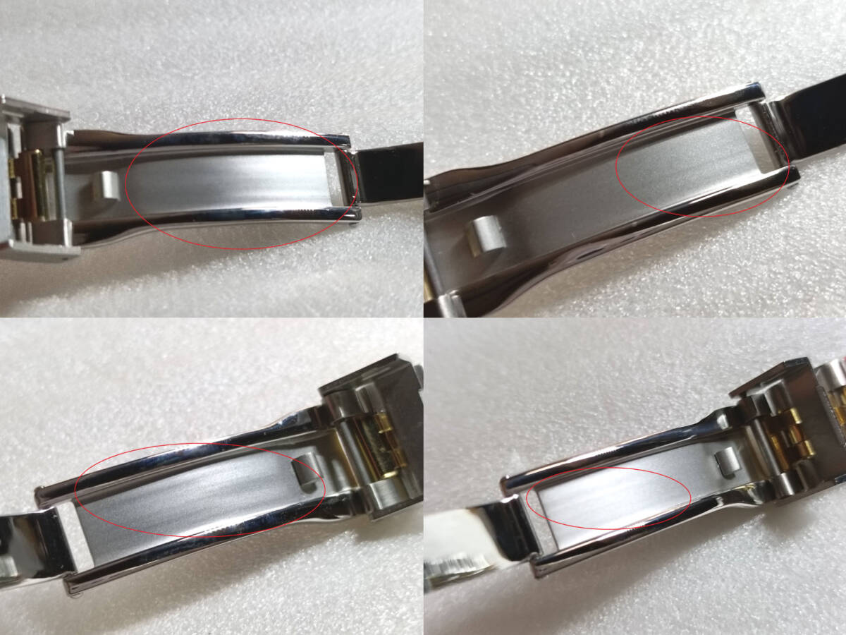 | 腕時計ロレックス等、互換用ベルトになります (訳あり)以下の理由によりジャンク扱いになります 若干の傷がございます(傷のイメージ:画像8) 中板に若干の傷、歪みがございます(傷のイメージ:画像9) エンドリンクの形状は画像でご判断ください コマは8個まで取り外し可能です(マイナスネジ) ※写真の色合いが濃くなっておりますが暗めのゴールドになります イージーリンク搭載 【サイズ】 長さ 185mm(調整可能) ラグ幅 20mm 尾錠幅 16mm 取付け幅 9mmバックル 40mm 【カラー/素材】コンビゴールド/316Lステンレス(センターポリッシュ) 【重量】 72g 【付属品】 バネ棒外し マイナスドライバー バネ棒 20mm 3本 送料無料 迅速・丁寧に発送いたします ※機器の都合により色合いが異なります ※エンドリンクの研磨加工が必要になる場合がございます ※サイズは若干異なります ※機種により取付けできない場合がございます | |||