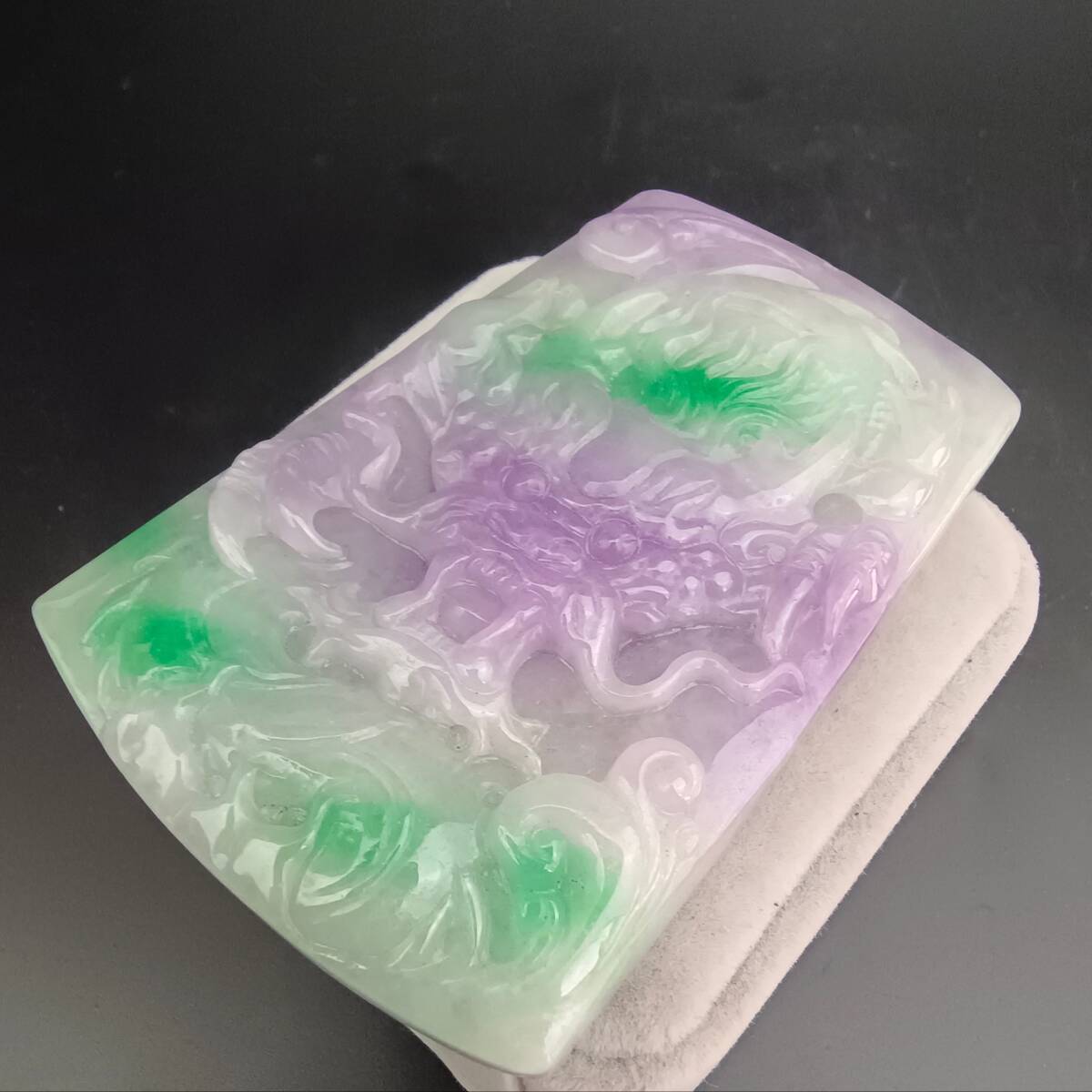【超珍館蔵】翡翠製 細密彫 龍行天下玉牌ペンダント 根付 裝身具 古賞物 古美術品 稀少珍蔵品