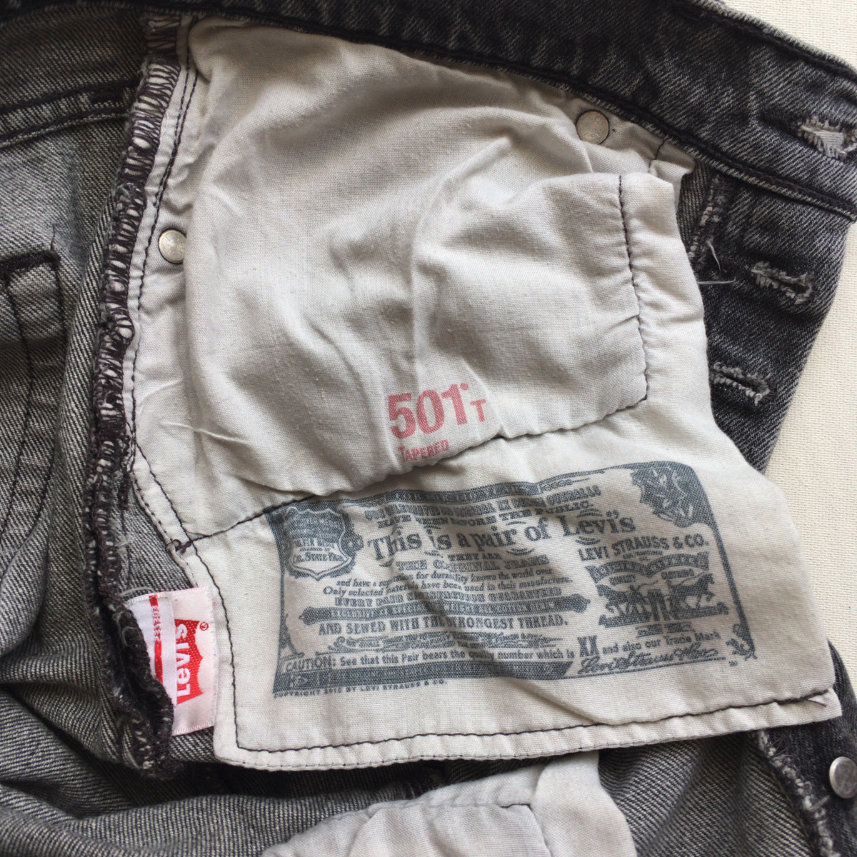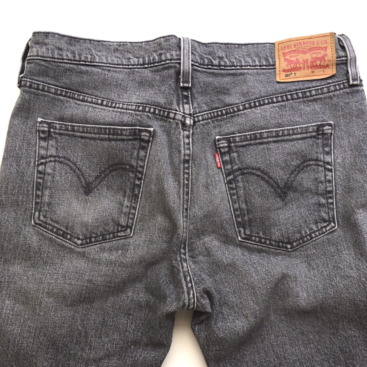 Levi's 501T ブラックデニム ジーンズ W28 L28 先染め黒色落ちグレー色 リーバイス 28インチ テーパードシルエット