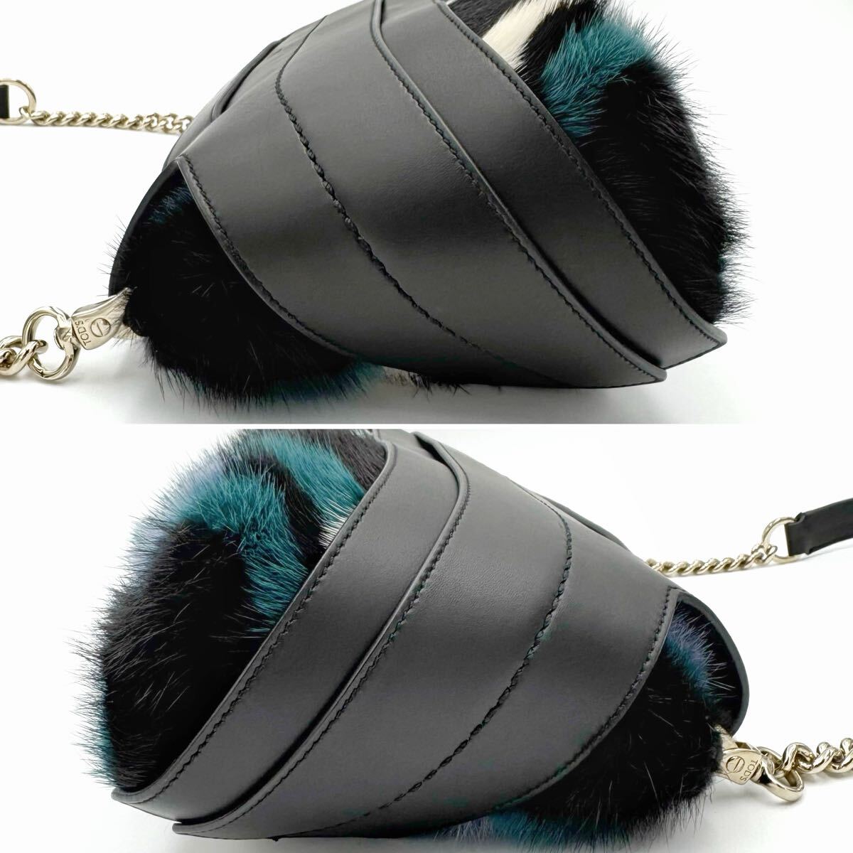 TOD'S トッズ ウェーブ ミンクファー チェーンショルダーバッグ 肩掛け リアルファー マルチカラー