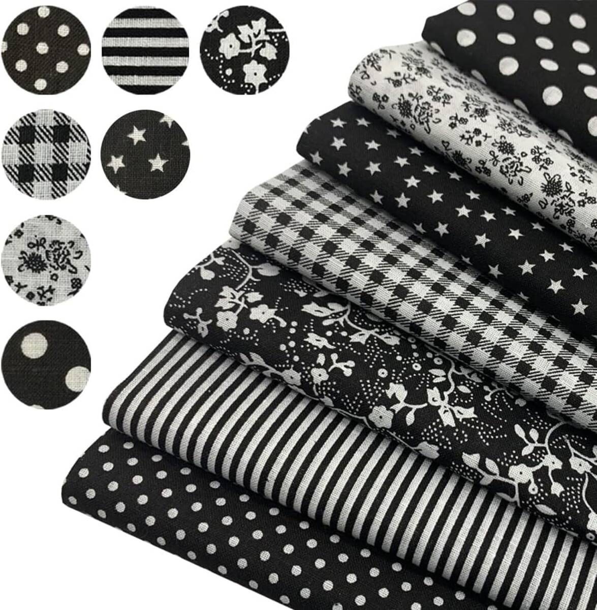 夜空に咲く星と花 白黒コントラスト布はぎれ 25×25cm 7枚図案セット
