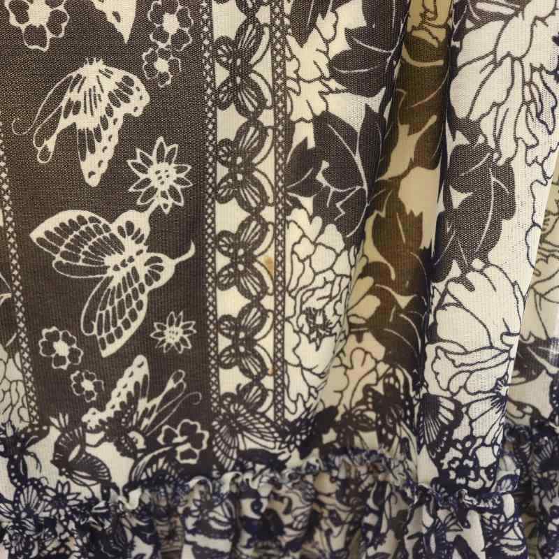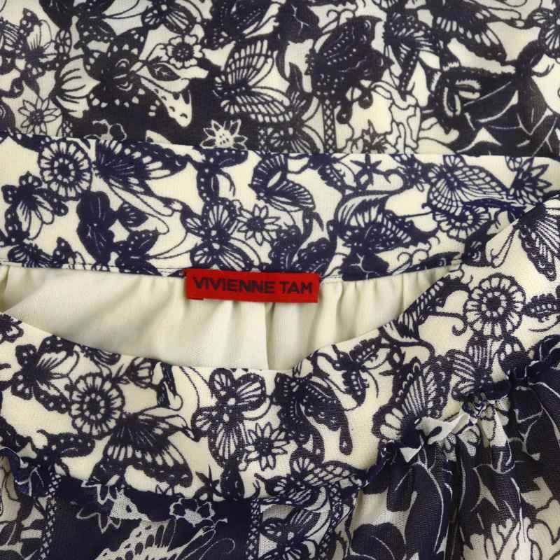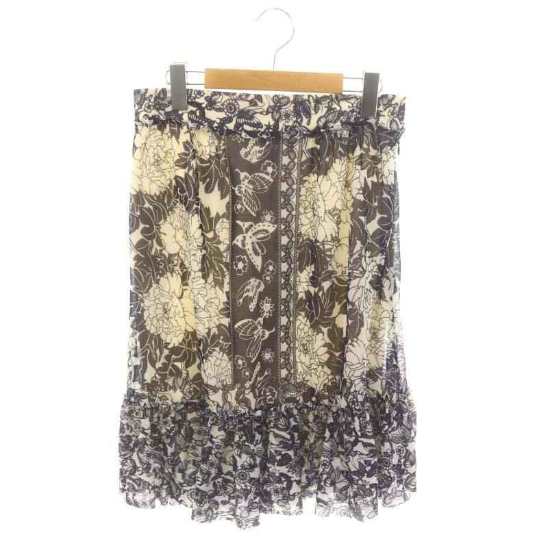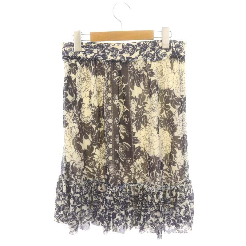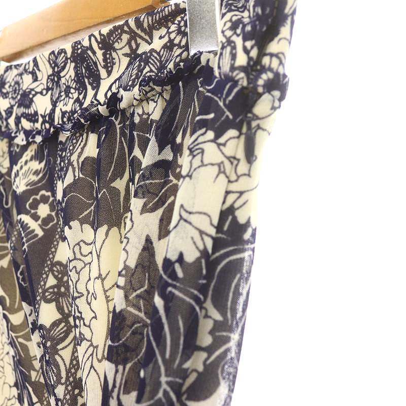 ヴィヴィアンタム VIVIENNE TAM フレアスカート ギャザースカート 膝丈 パワーネット 花柄 0 紺 ネイビー アイボリー