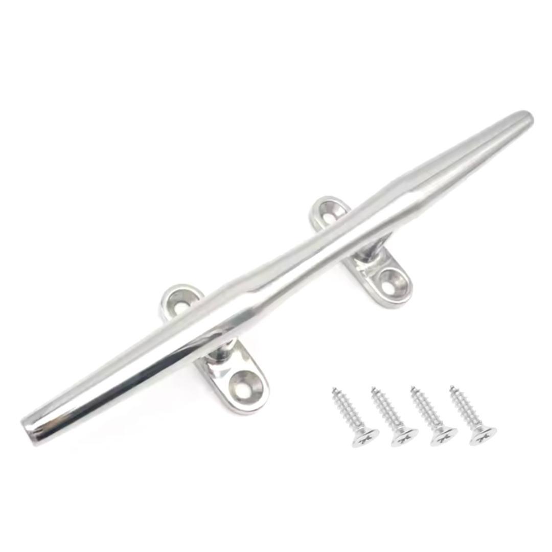 大型艇・プレジャーボート等に適した、全長25cmのステンレス(SUS304)製クリートです。もやい綱やアンカーロープの固定にご使用いただけます。耐食性に優れたSUS304ステンレス製で、錆びにくく丈夫なため、マリン環境での使用に適しています。