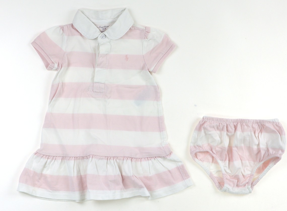実際のサイズ表記は85cm。厚手のコットンカットソー地。ブルマ付き。洗いざらし感と後ろの裾ちかくに小さな汚れがありますが、まだまだ活躍してくれそうです。