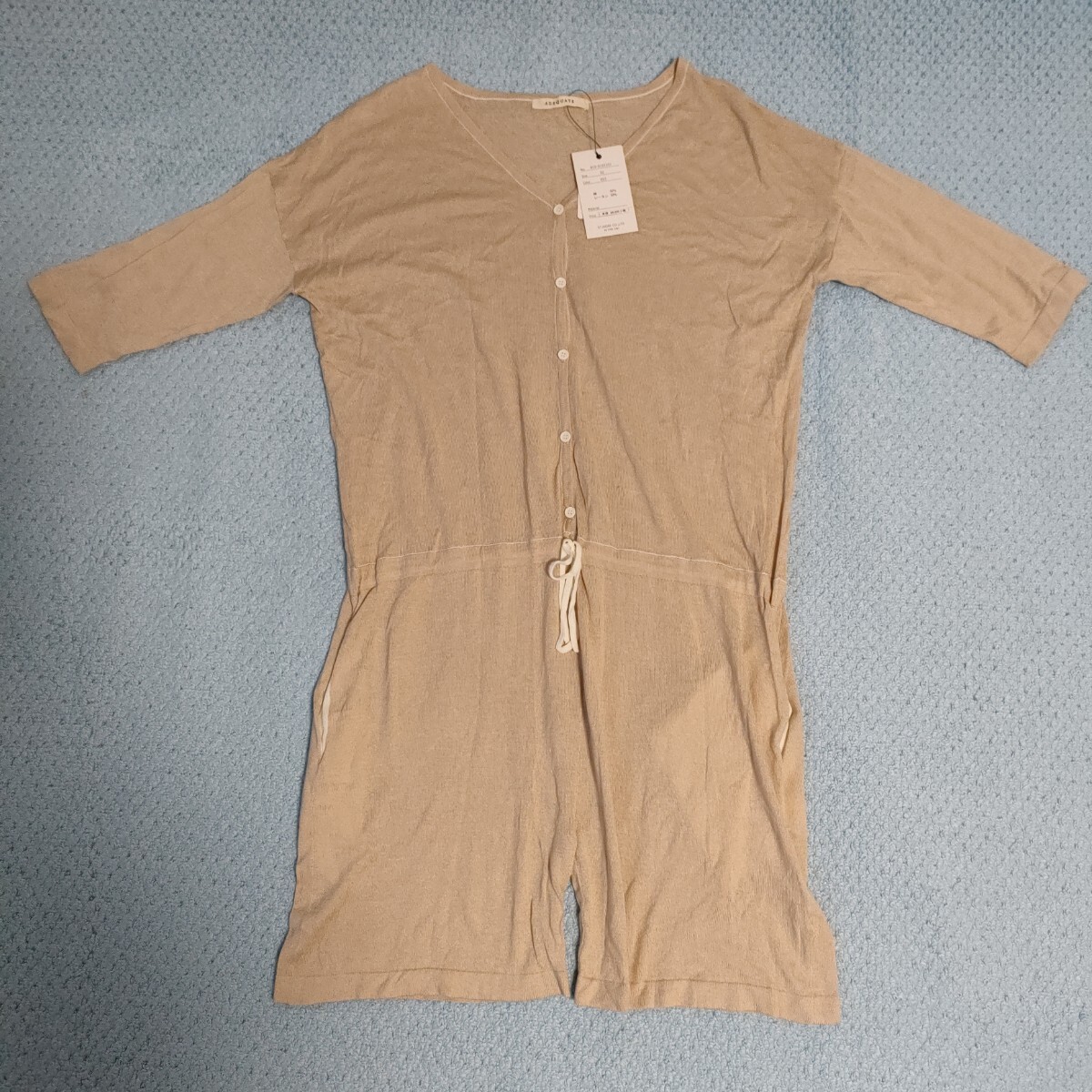 色:茶色系 説明:表記サイズ2━Mサイズ相当 (生地は伸縮性がしっかりあるので、サイズに余裕あります) サイズ 平置:肩幅:約55cm 袖丈:約25cm:身幅 約54cm:着丈約87cm 脚部分 13cm ※素人の採寸ゆえに若干の誤差がございますのでご了承下さい。 素材: 綿50% レーヨン50% (撮影環境や光の加減により、アパレルの実物の色味と画像が若干異なって見える場合がございます。