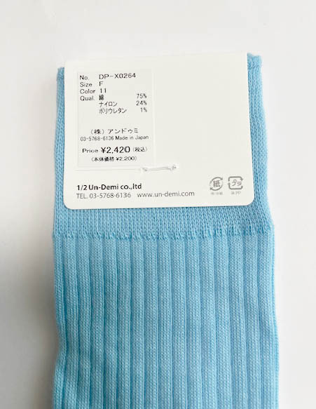 未使用・新品 半額 レディス サックスブルー×ブラウン バイカラーソックス 綿リブ 長25センチ パンツにも2420円 elleverystory ジャーナル
