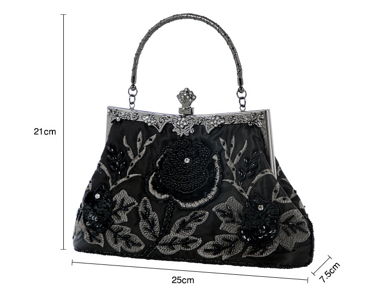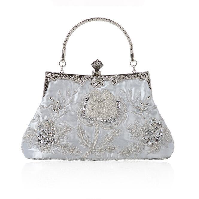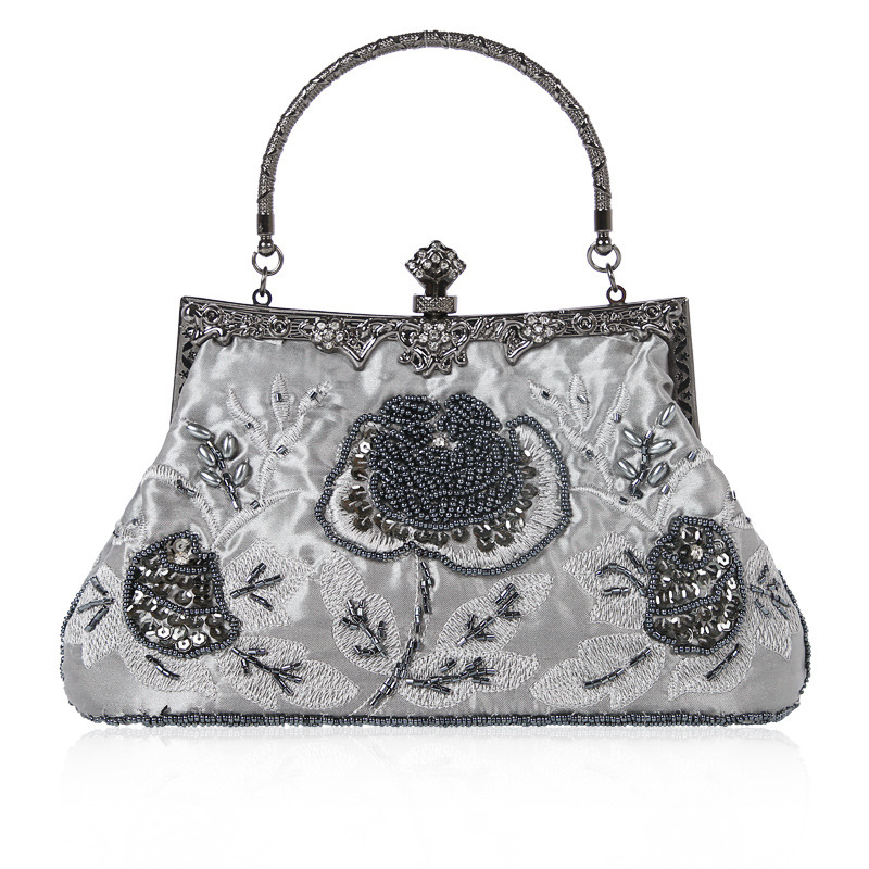 新品上質 シルバー 2WAY クラッチバッグ ハンドメイド ビーズ パーティーバッグ がま口バッグ ロングチェーン付属お色選択可